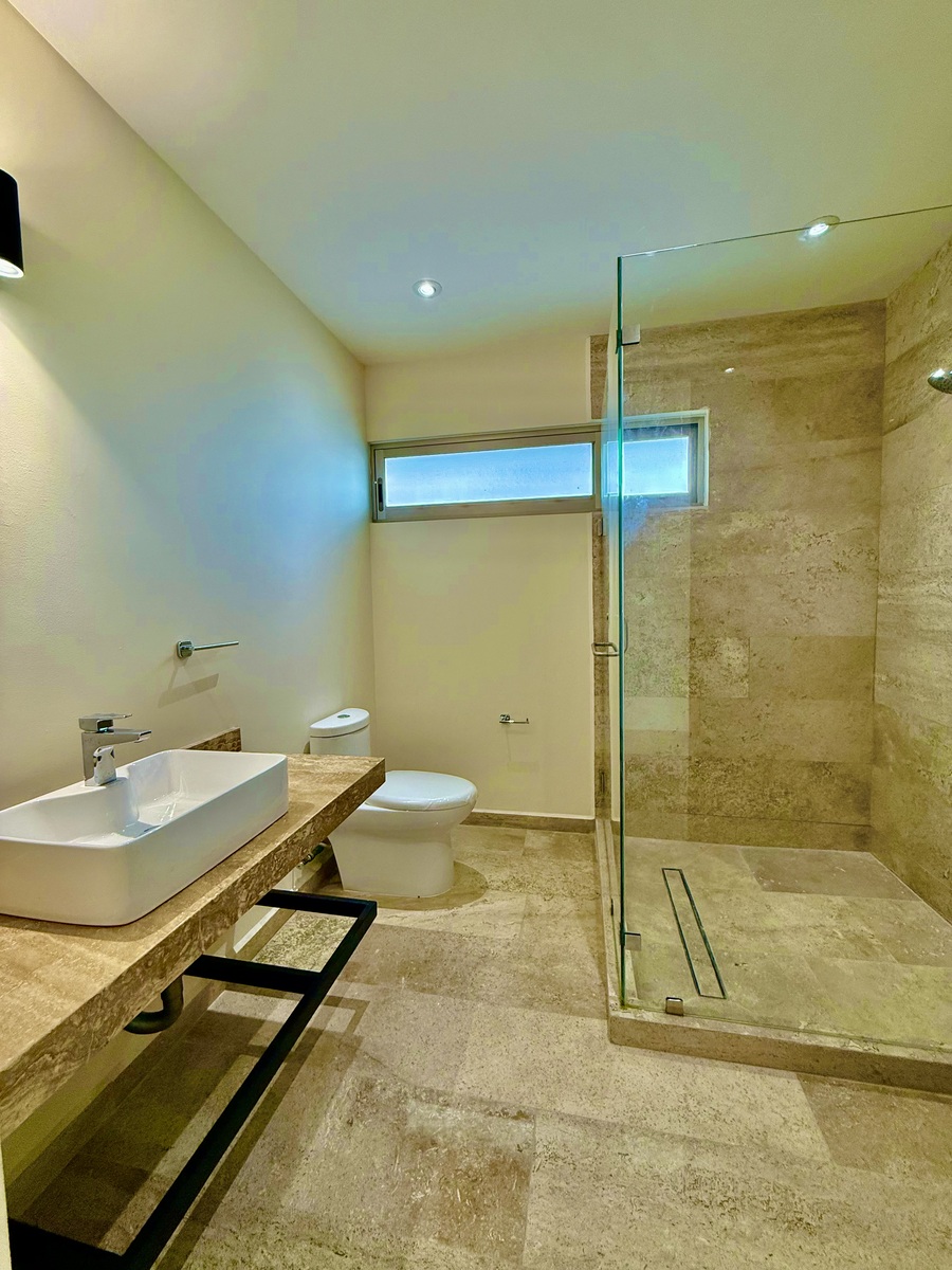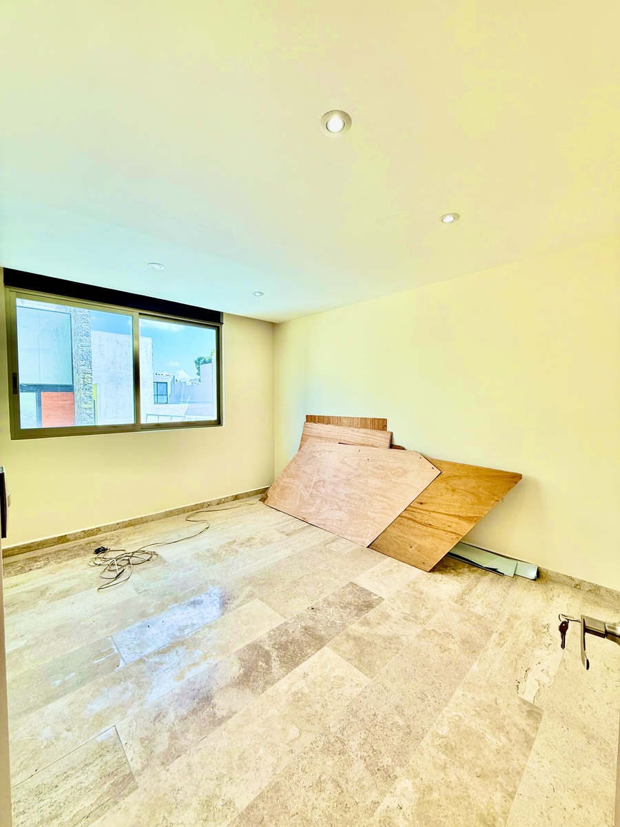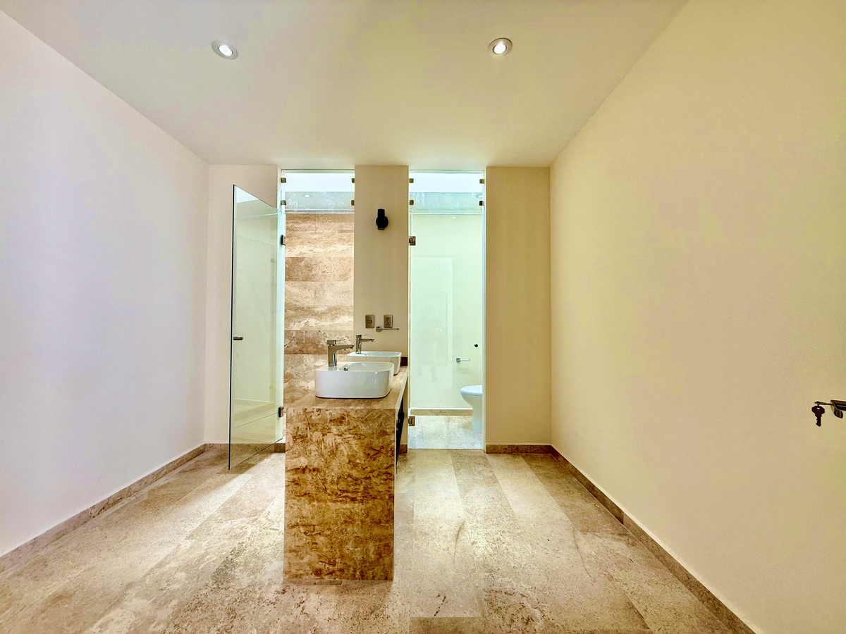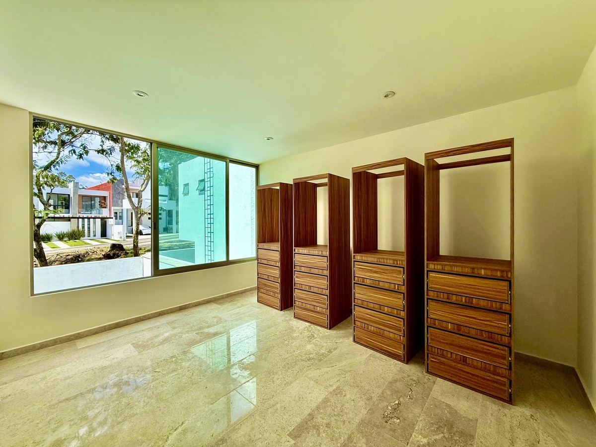 • Recámara principal con walk-in clóset, doble lavabo, amplia regadera con luz cenital y vista a la alberca