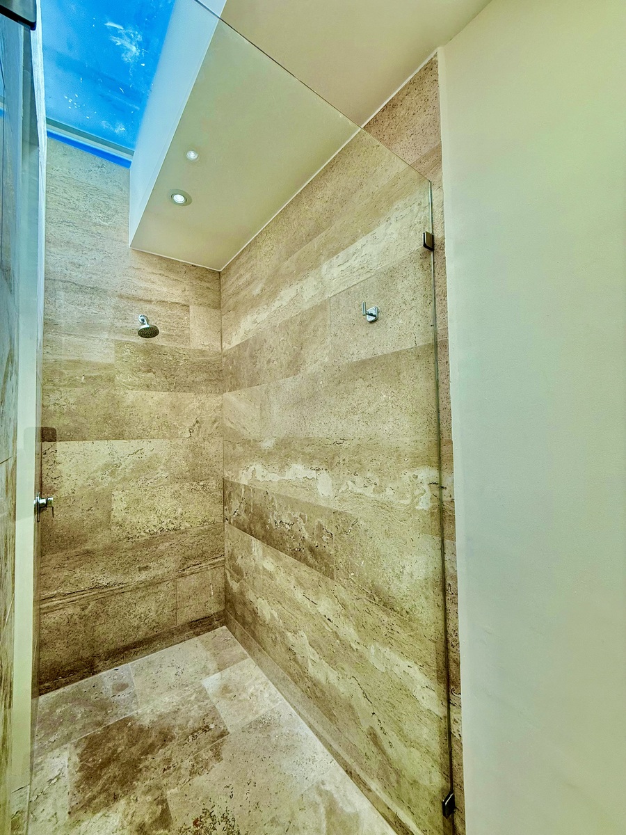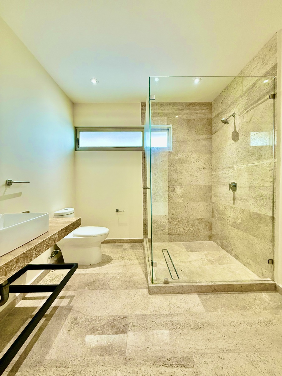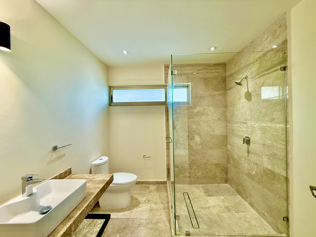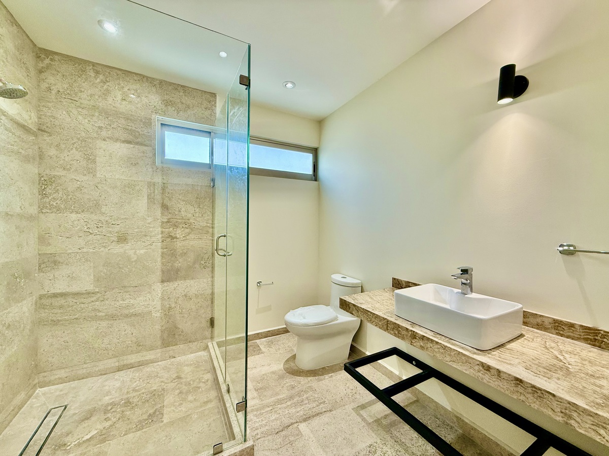• Recámara principal con walk-in clóset, doble lavabo, amplia regadera con luz cenital y vista a la alberca