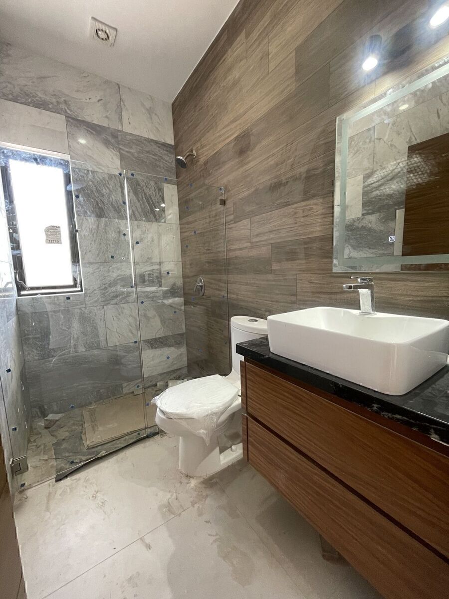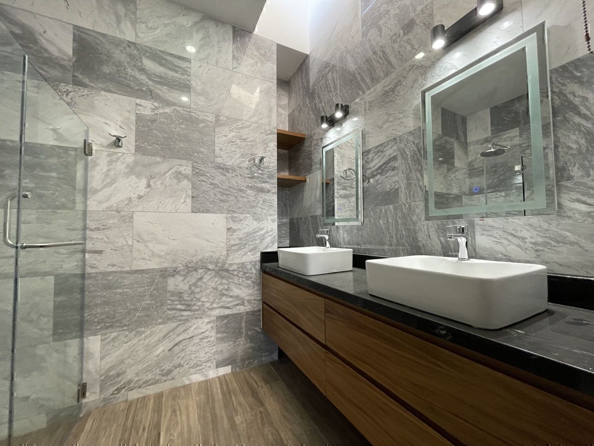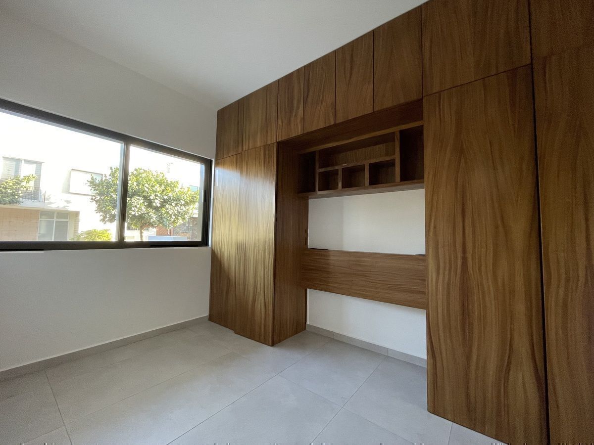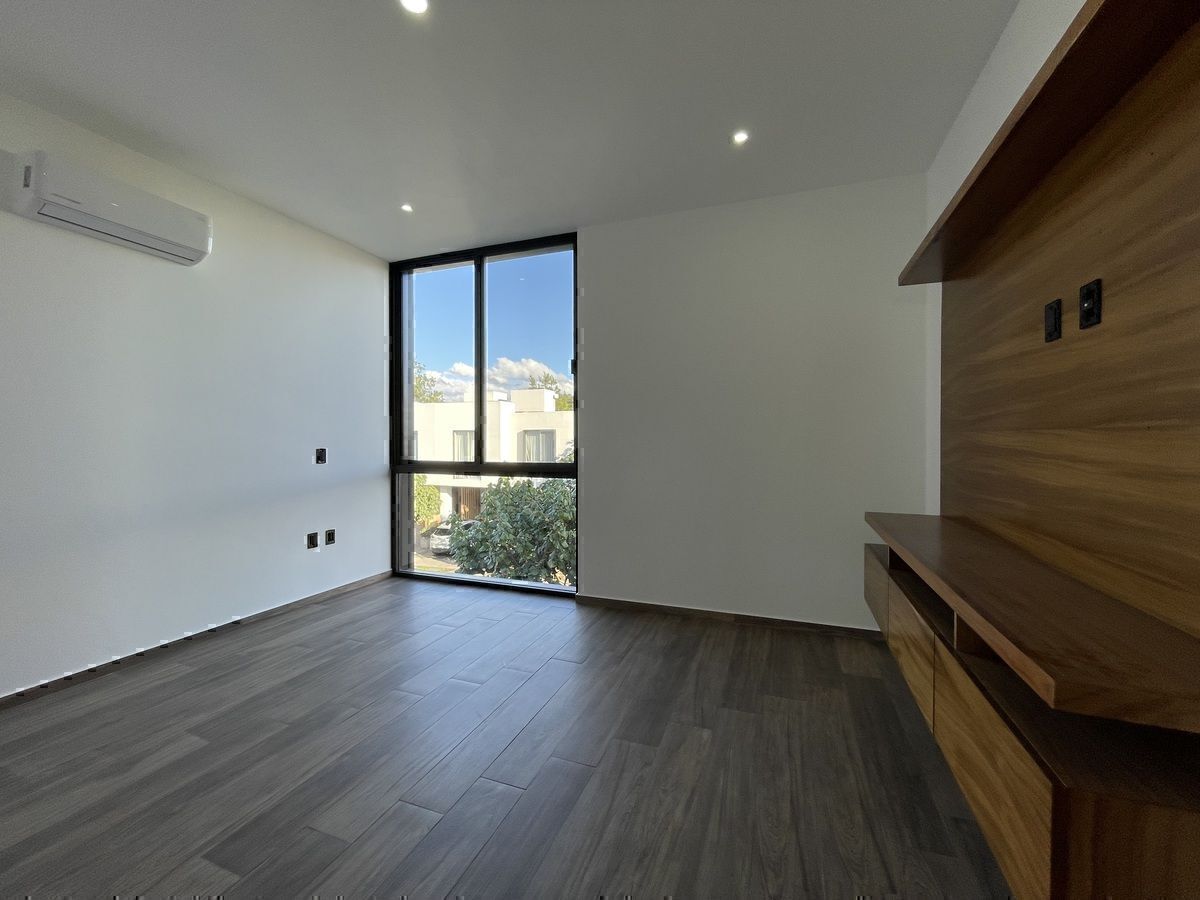 Sala, comedor, cocina con barra, jardín, recámara en PB con baño completo o estudio, 3 recámaras en planta alta con baño cada una , principal con vestidor, estar TV, cochera 2 autos , coto privado con vigilancia