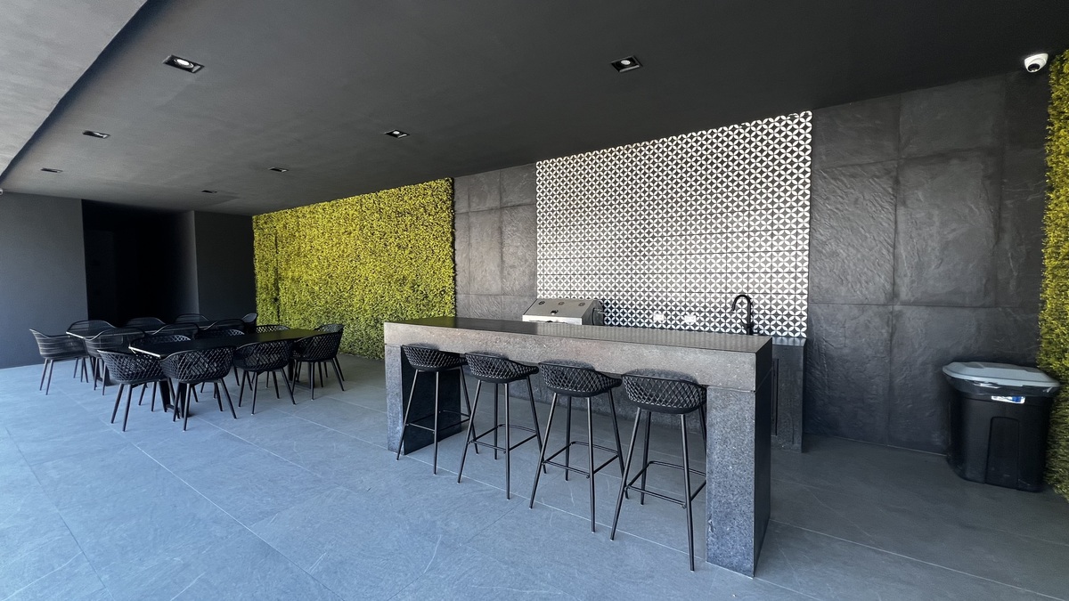 ▫️ Jardín con **pasto sintético, terraza, pérgola y asador**