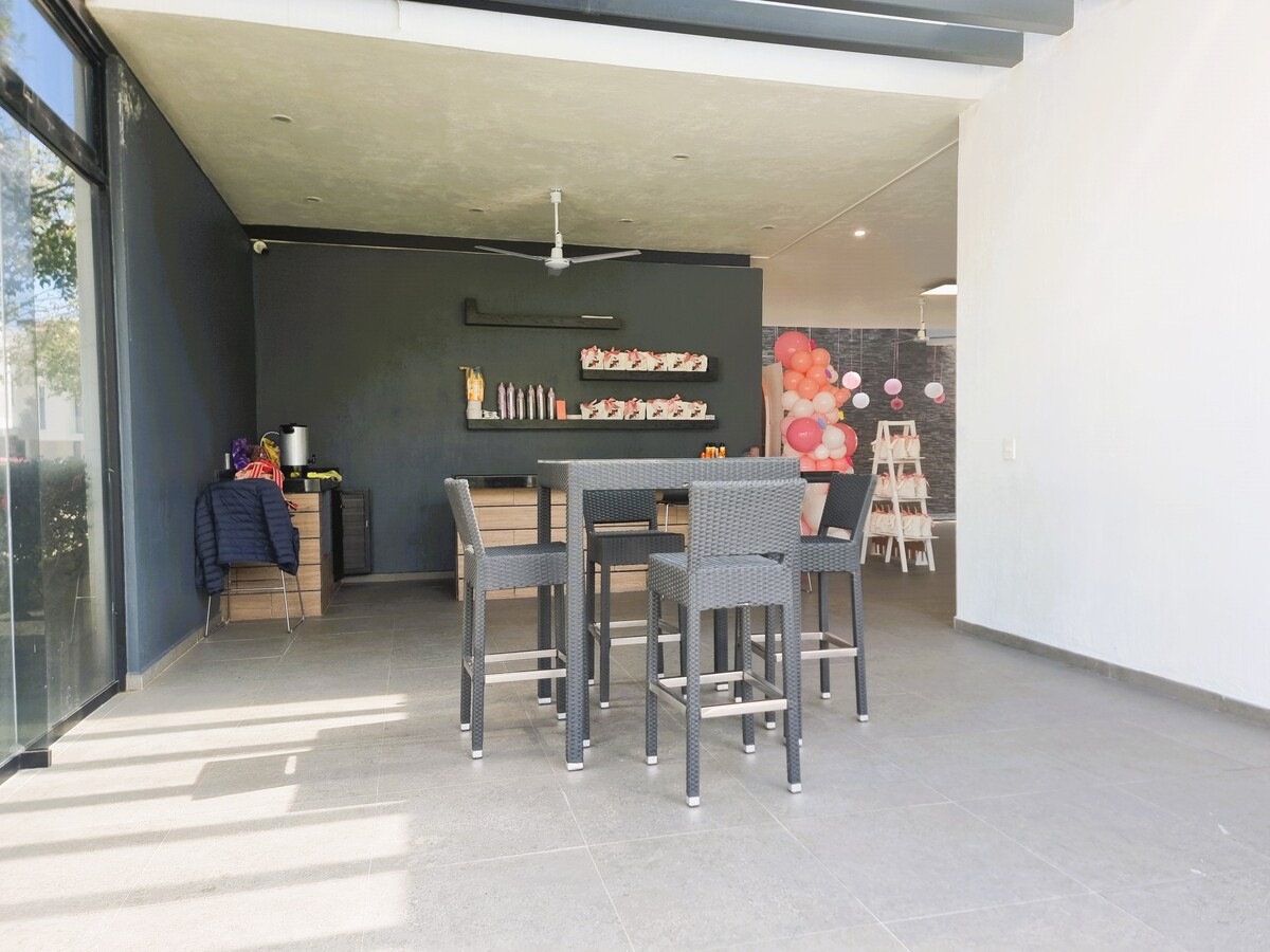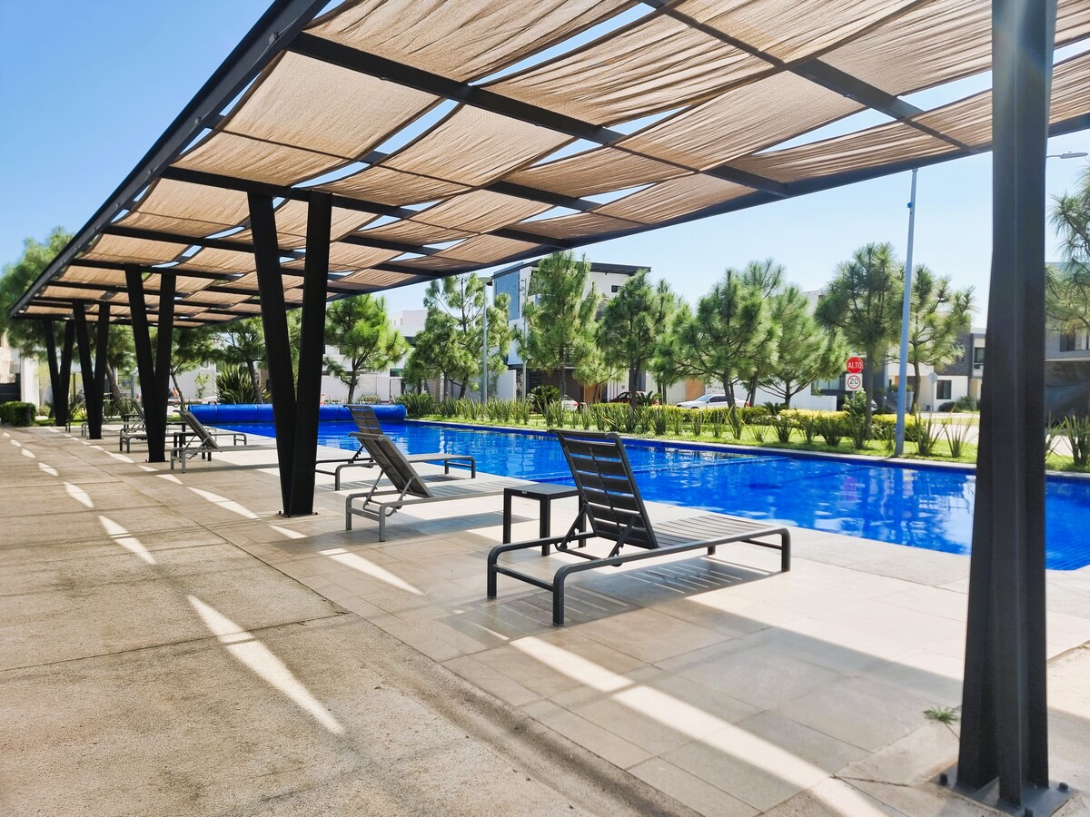 Alberca climatizada y cuenta con chapoteadero, Área de juegos infantiles, terraza para eventos techadas con cocineta, Gimnasio muy equipado, baños con regaderas, cámaras de seguridad y cerca eléctrica en todo el condominio.