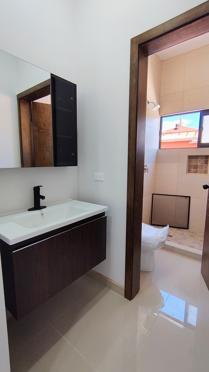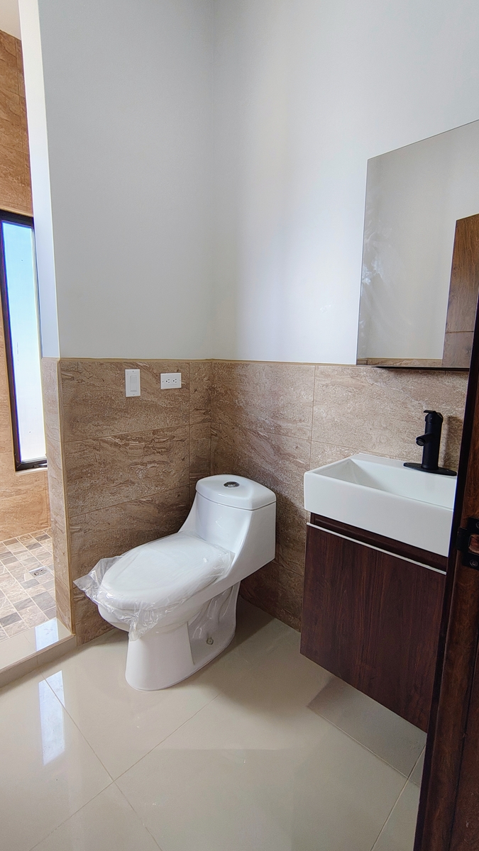 👉 NOTA: Incluye: Bardas, sanitarios y lavamanos (los modelos pueden variar), llave mezcladora en lavamanos y bañera, luces led en techo de interior, puertas con chapa, ventanas, loseta en interior, puerta de herrería peatonal y para el carro, banqueta en el perímetro de la casa y rodadas de concreto para autos.
