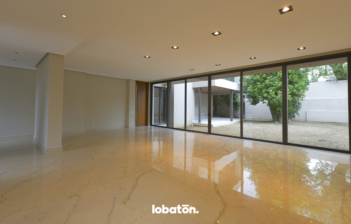 * Planta baja: Recibidor, sala, comedor, estancia, cocina, lavandería, cuarto de servicio con baño, baño de visitas, terraza, jardín de 175 m2, cochera para 4 autos, 2 bodegas, preparación para elevador.