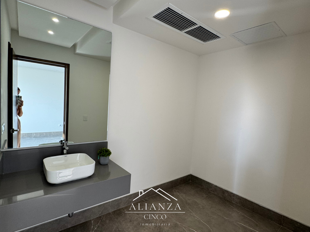 Cuenta con amplios espacios de sala, comedor y una cocina totalmente equipada con cubierta de cuarzo, además de 3 recámaras con walk-in closet, baño y balcón. Una recamara que puede ser oficina, cuarto de juego o gimnasio, lavandería con shut para ropa y cuarto de servicio con baño completo.