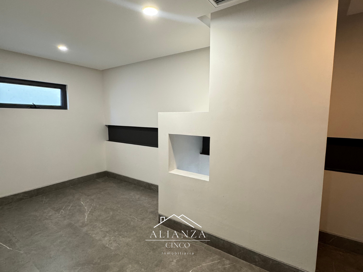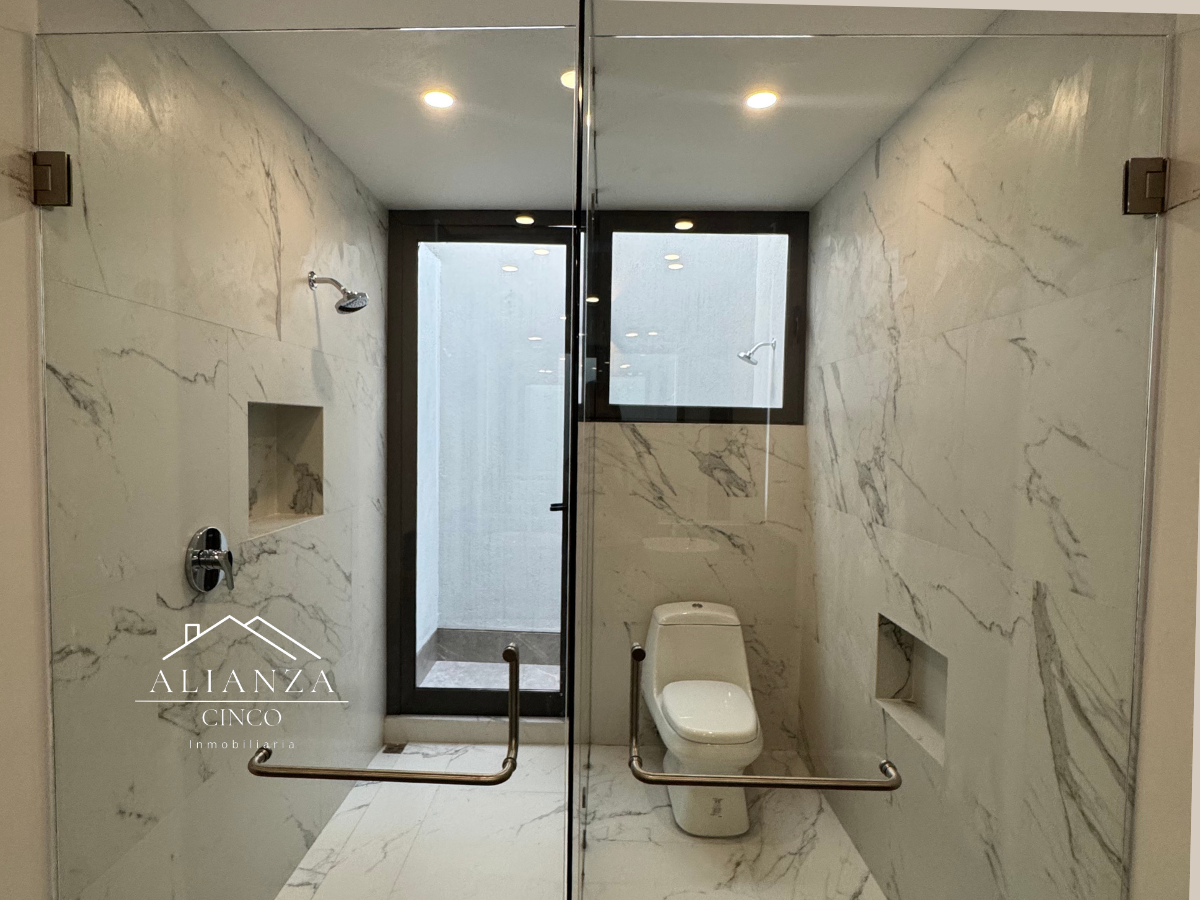 Equipada con clima central seccionado, riego automatizado, asador, caseta de seguridad 24/7, vigas de acero, preparación para cisterna, paneles solares, alarma y cargador eléctrico para automóvil.