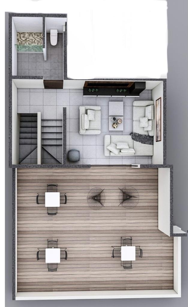Tercer nivel: Salón multiusos, baño completo y terraza con espectaculares vistas.
