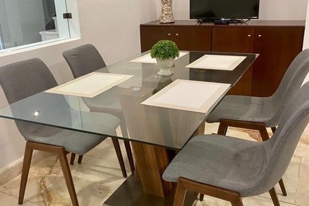 On the first level, the design stands out with a double-height living and dining room enhanced by large windows, which intensifies the entry of natural light and amplifies the feeling of space and openness. In contrast, the second level focuses on privacy and comfort, housing most of the bedrooms in a carefully designed environment to provide tranquility and well-being.Esta casa de dos plantas ofrece la combinación perfecta de comodidad y elegancia. La fachada, con su estilo moderno y elegante, sirve como preludio a un interior que explora una integración fluida entre los espacios interiores y exteriores.