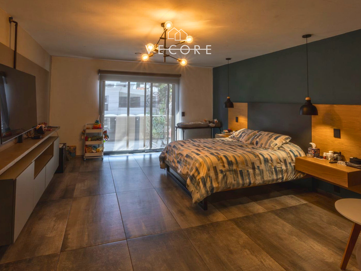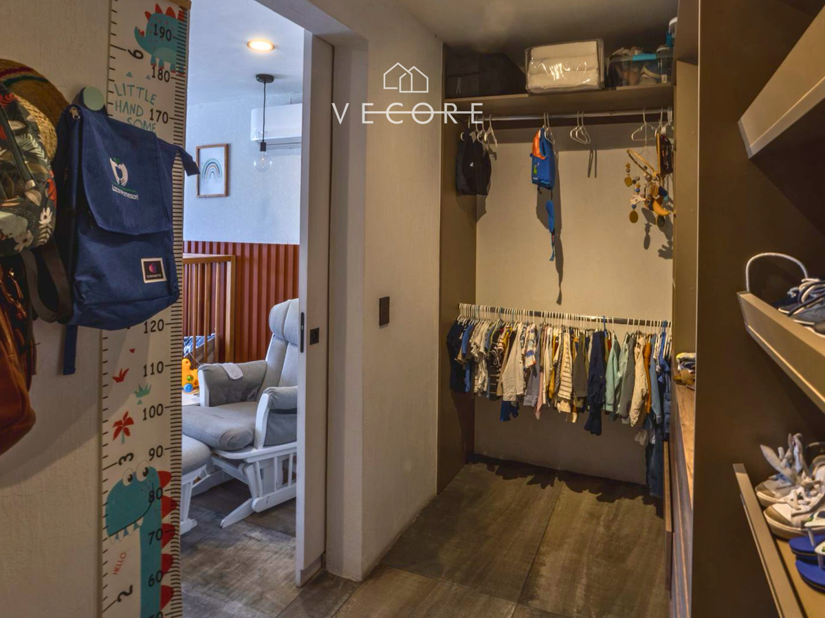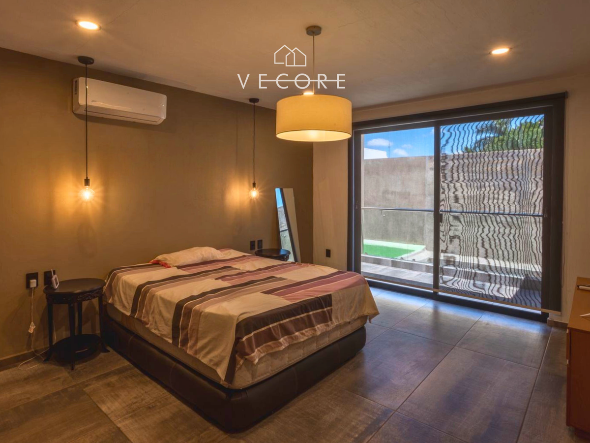 Recámara secundaria con walking clóset, aire acondicionado y baño completo