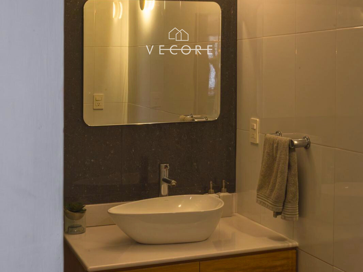 Recámara secundaria con clóset, aire acondicionado, baño completo y balcón