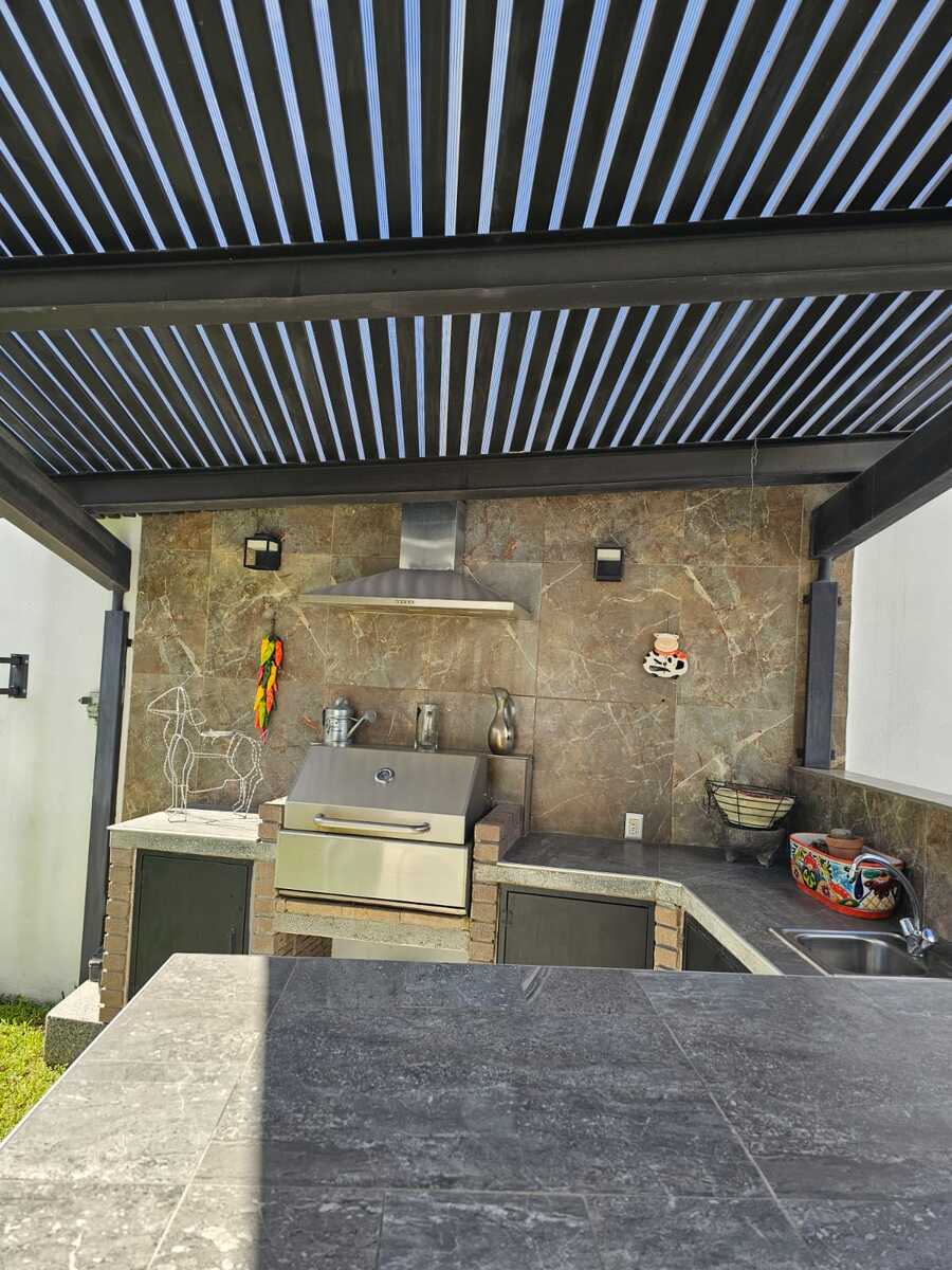 Cuenta con terreno excedente por ser en esquina y ahí esta el área del asador con su barra, baño y un amplio jardín para disfrutar de las reuniones con amigos y familiares.