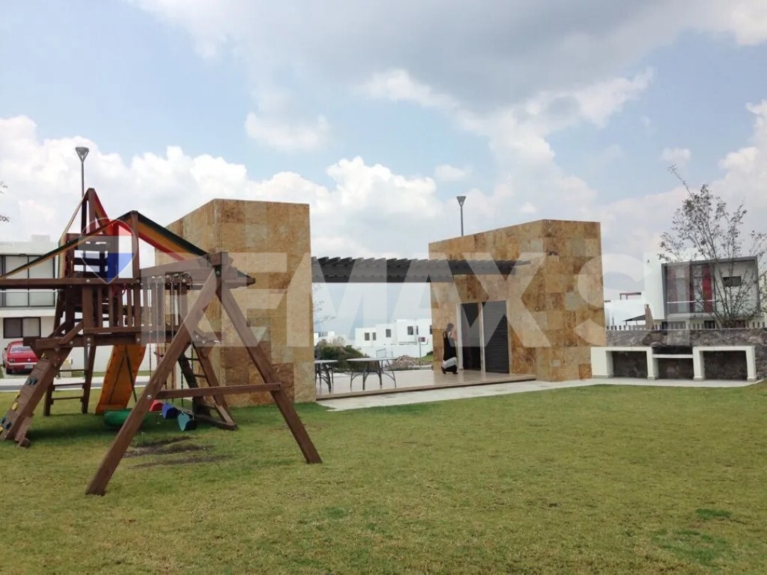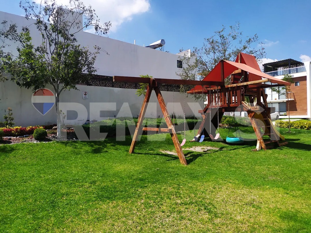 Tiene amenidades para el esparcimiento: asador, área de juegos infantiles.