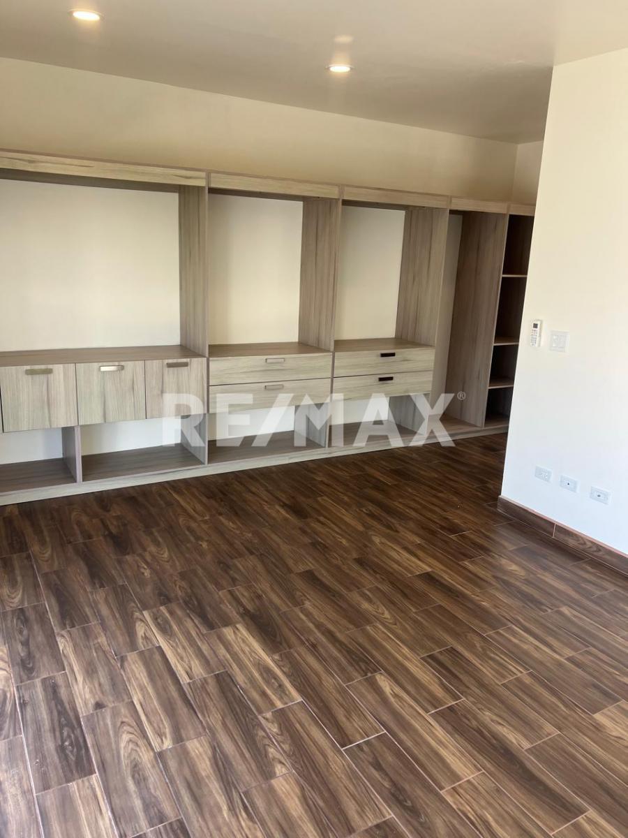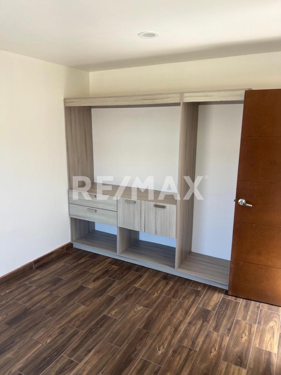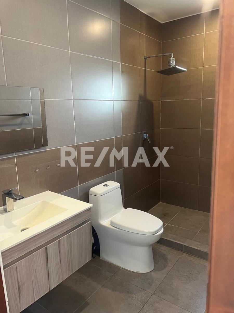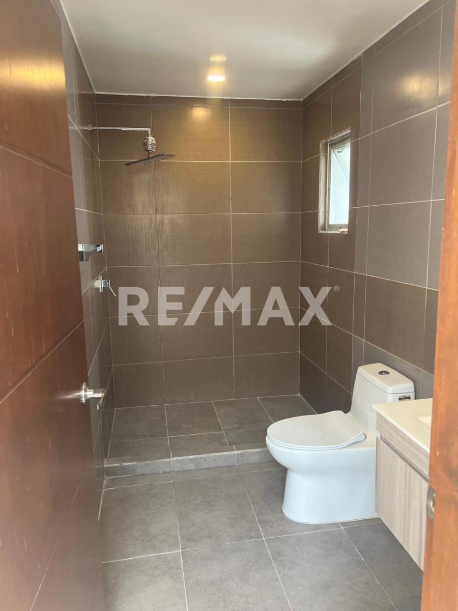 Recámara principal con baño completo y clóset con cajonera.