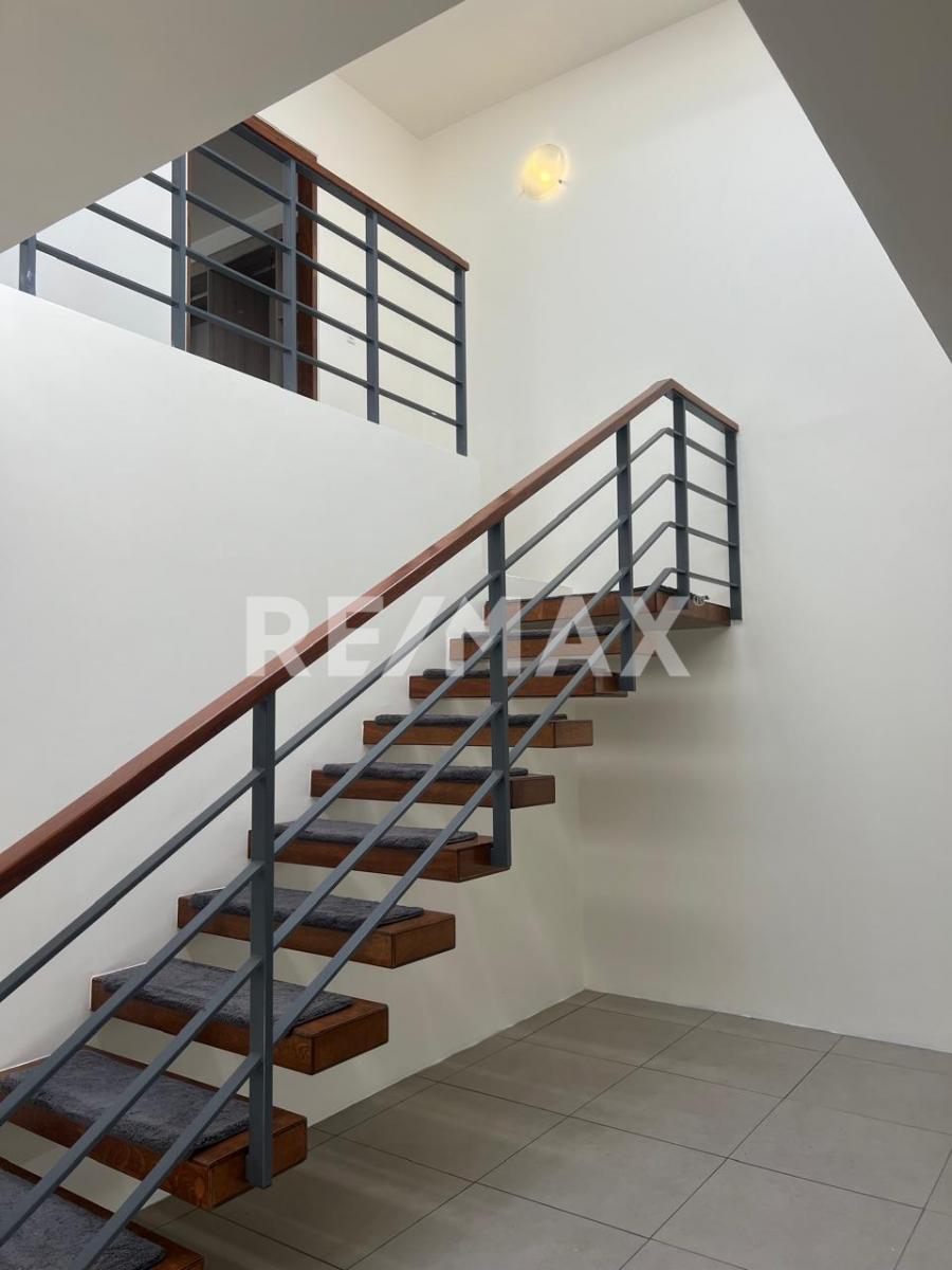 Primer piso: Sala, cocina y comedor amplios; medio baño y cuarto de lavado equipado para lavadora y secadora.