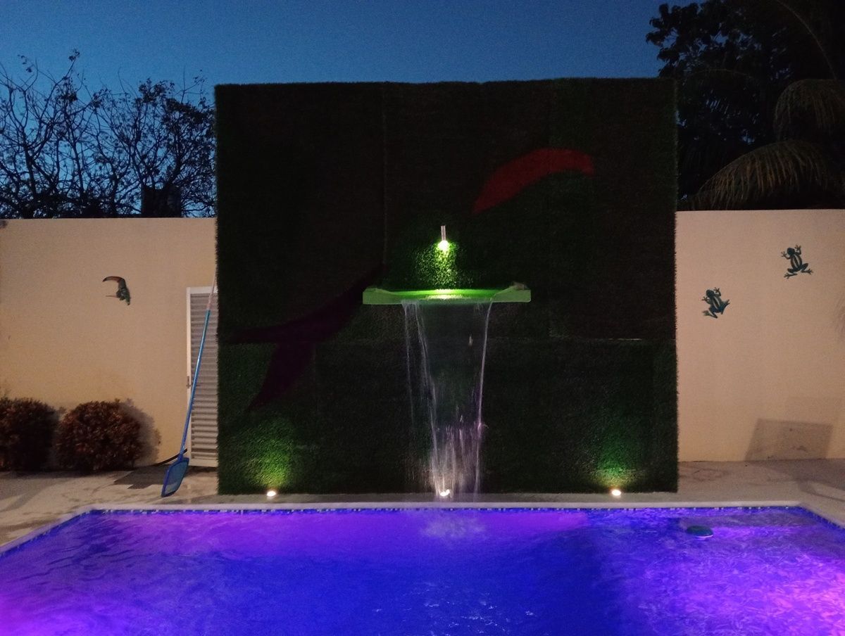 Piscina de 7 x 4 mts. con cascada iluminada.