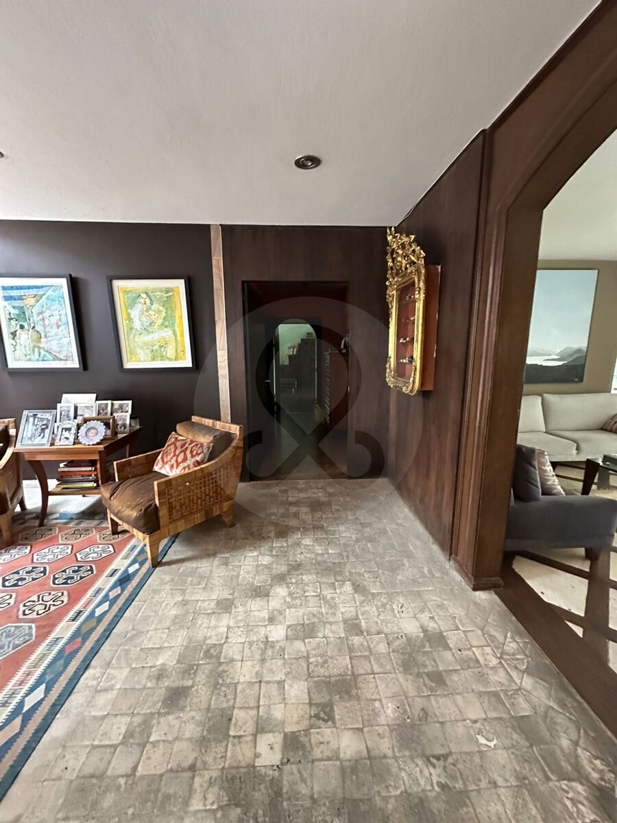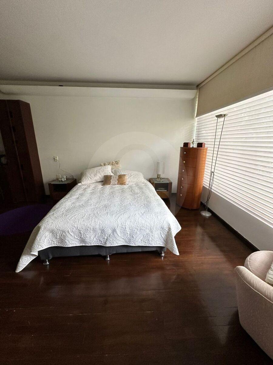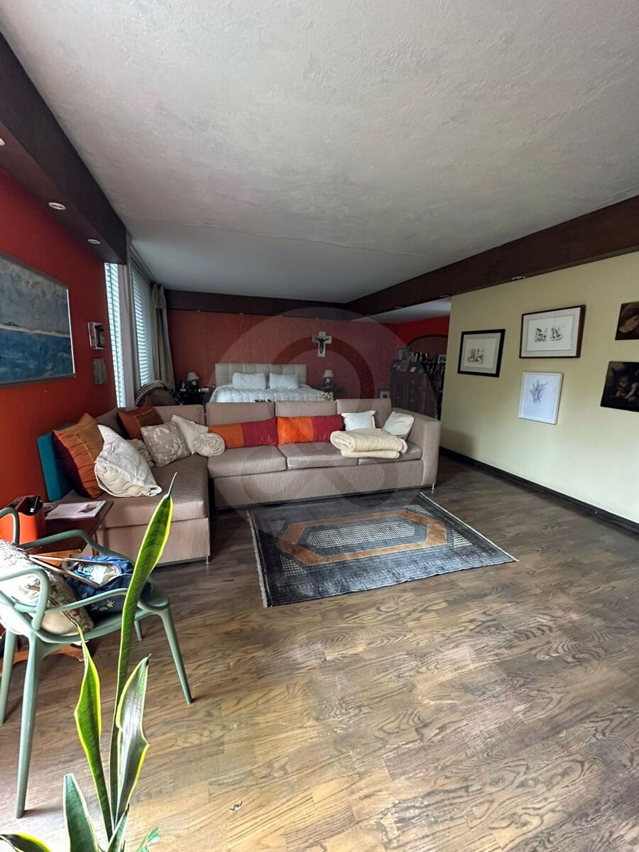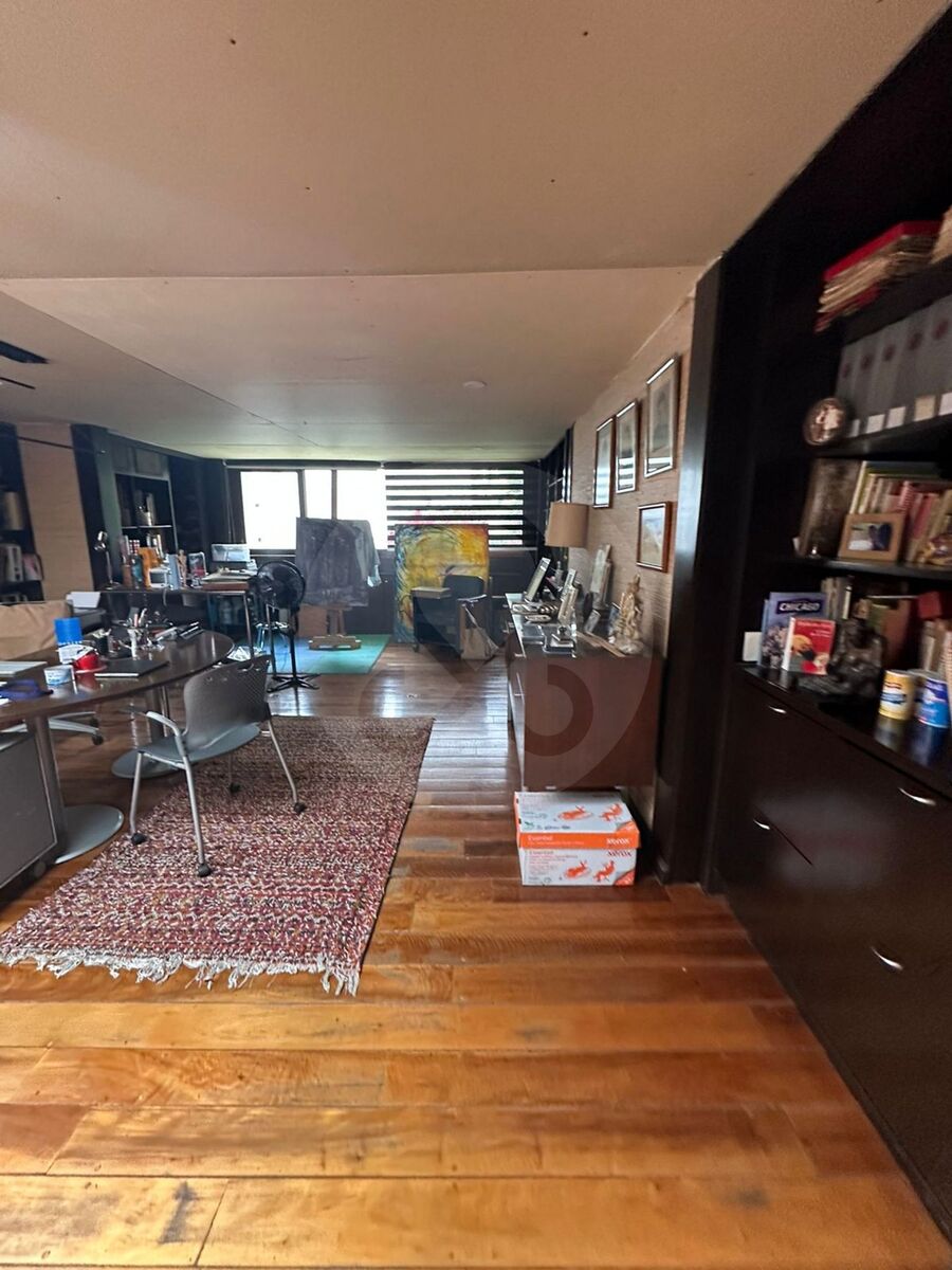 Hall de distribución, 3 recámaras, dos vestidores y un closet, 2 baños, estudio, área muy amplia e iluminada para usos múltiples, que puede ser otra recámara.