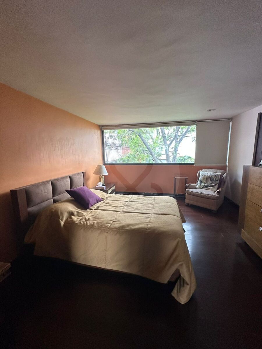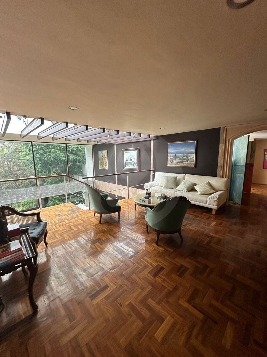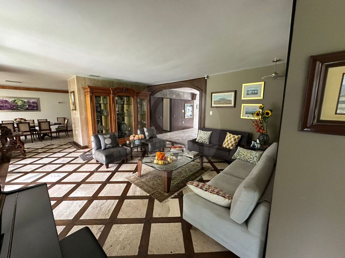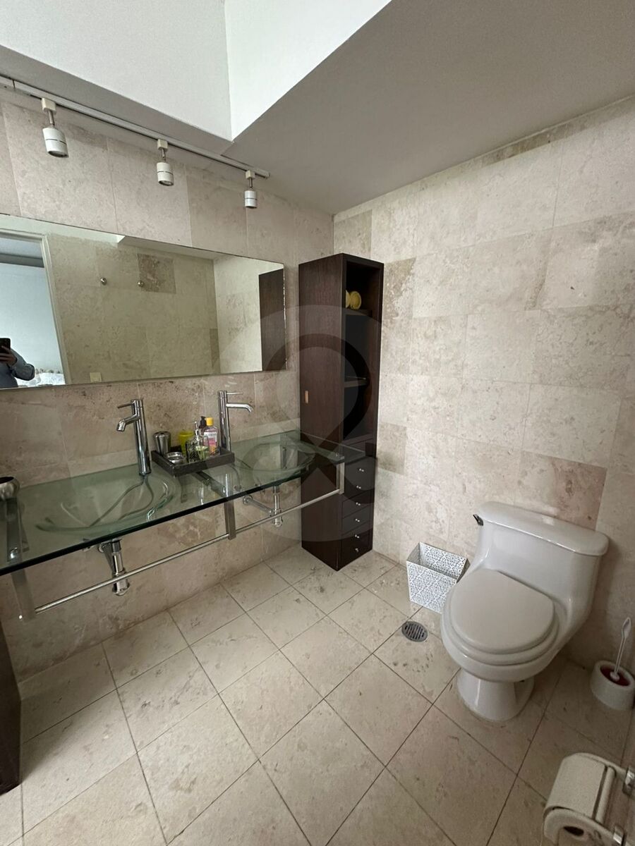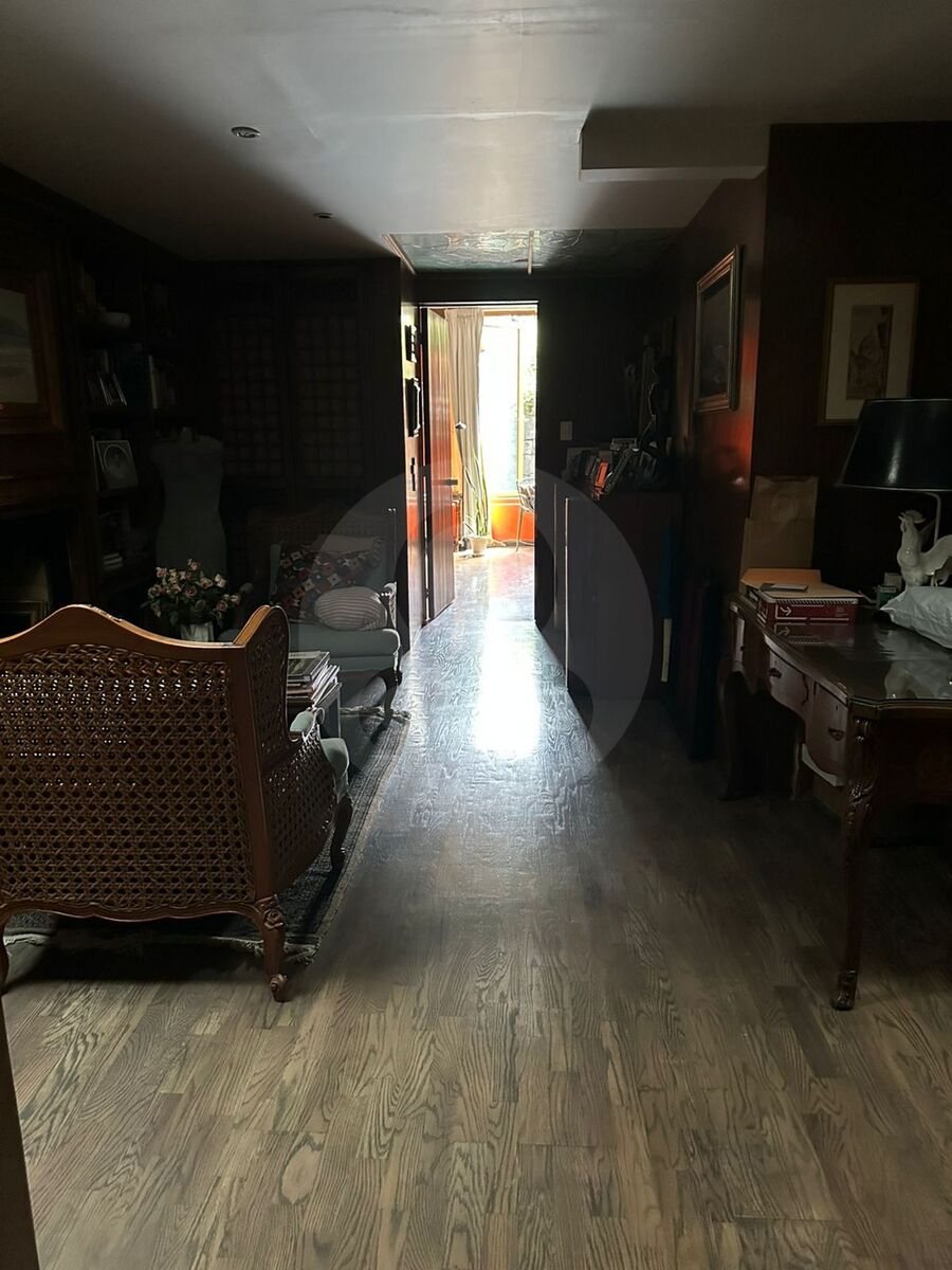 Hall de distribución, 3 recámaras, dos vestidores y un closet, 2 baños, estudio, área muy amplia e iluminada para usos múltiples, que puede ser otra recámara.