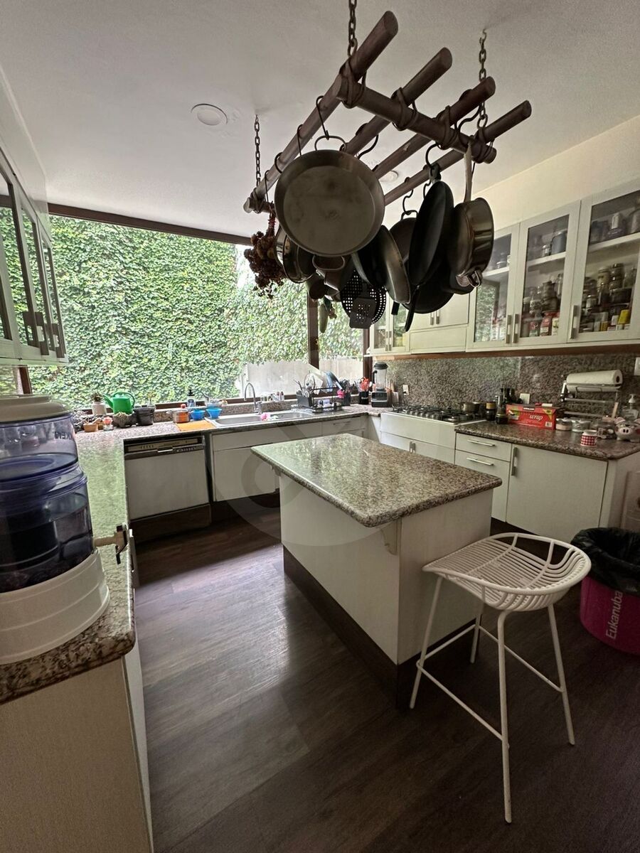 baño visitas, 2 recámaras con baño y closets c/u, antecomedor, cocina equipada, áreas de lavandería y servicio.