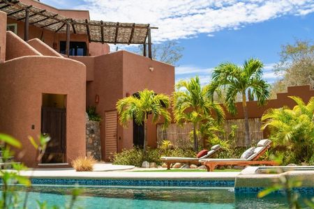 Welcome to Casa Tomas! This unique beautifully landscaped 2 lot fully furnished home with separate living areas ideal for a big family, rentals, or as an investment to build a big home on the second lot. The lower level of the home is a full 3-bedroom, 2-bath home with a nice kitchen, dining, and living room. The separate second level accessible from external stairs is a beautiful open concept living area combo with full bath, kitchen/bar area and front patio boasting gorgeous views of the Sea of Cortez and the Four Seasons resort. The lovely yard area has a small kitchen area that is covered, a storage bodega, covered parking. Included is a beautiful 1 bedroom self sufficient ocean view trailer artfully garaged with bamboo. The walled lot next door has a big garage, boat/truck included!
