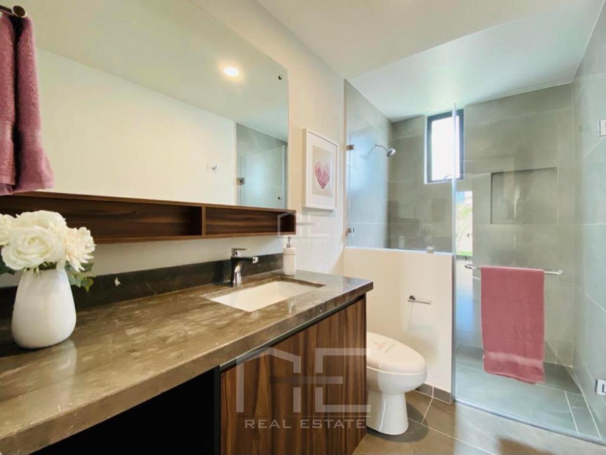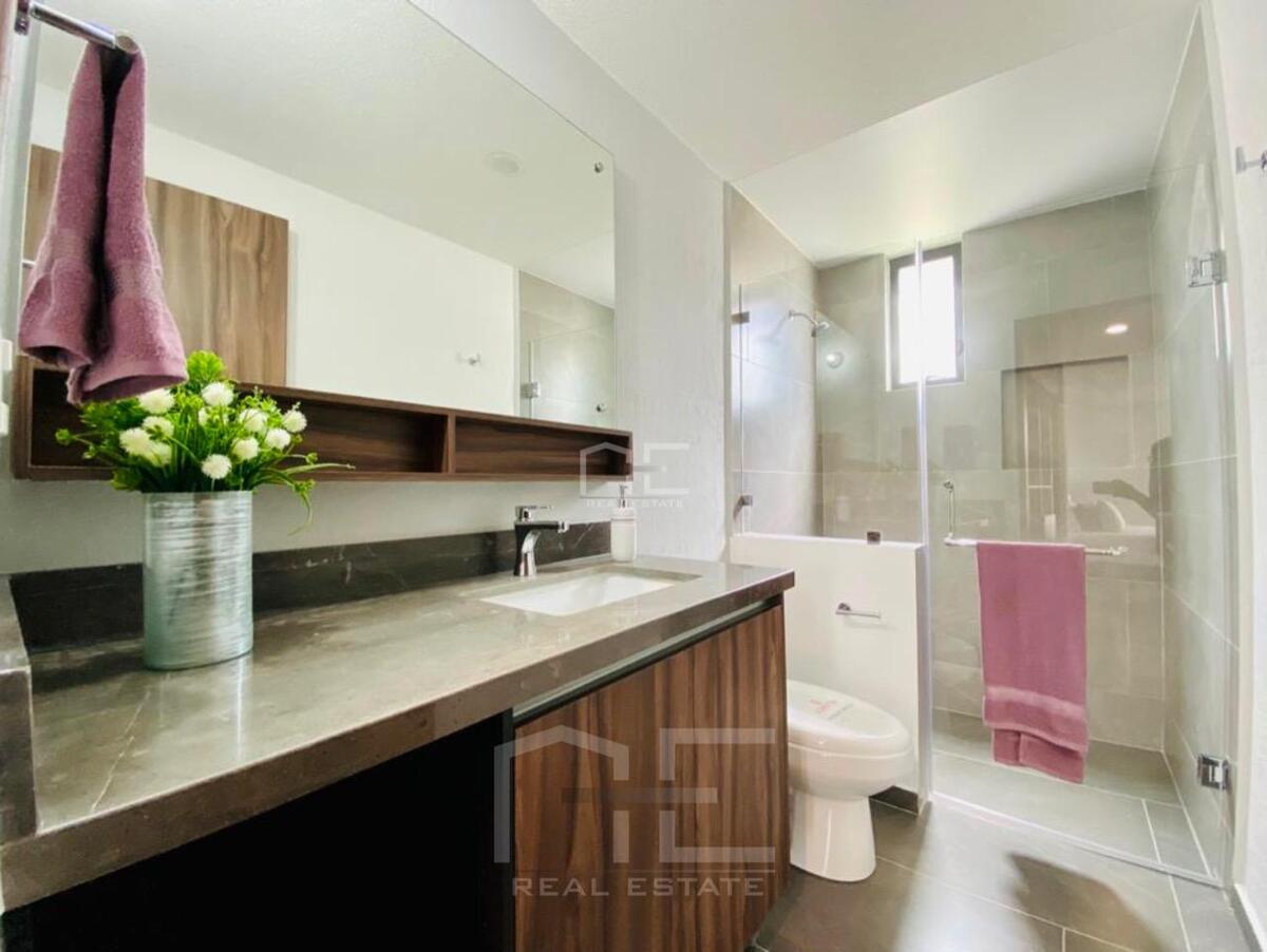 En un área más privada tendrás Master Suite con Vestidor y Baño, espacio para cama King Size, área para Clóset o escritorio y vista al jardín, 2 Recámaras Secundarias igualmente con espacio para cama King Size y con Clóset, Baño Completo.