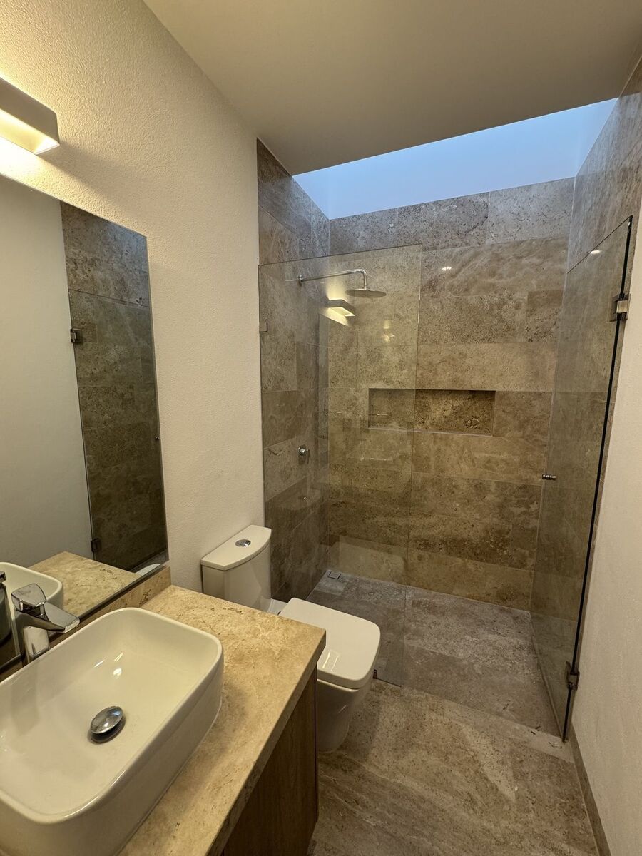 - 1 Recámara principal con vestidor, baño con dos lavabos, dos regaderas y tina