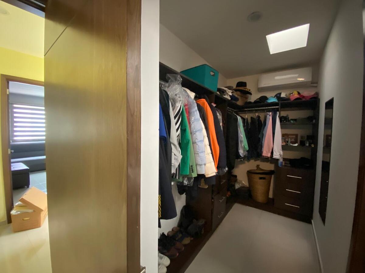 3 Recamaras, la principal con baño, vestidor y aire acondicionado, otro baño que comparten las otras 2 recamaras y un distribuidor.