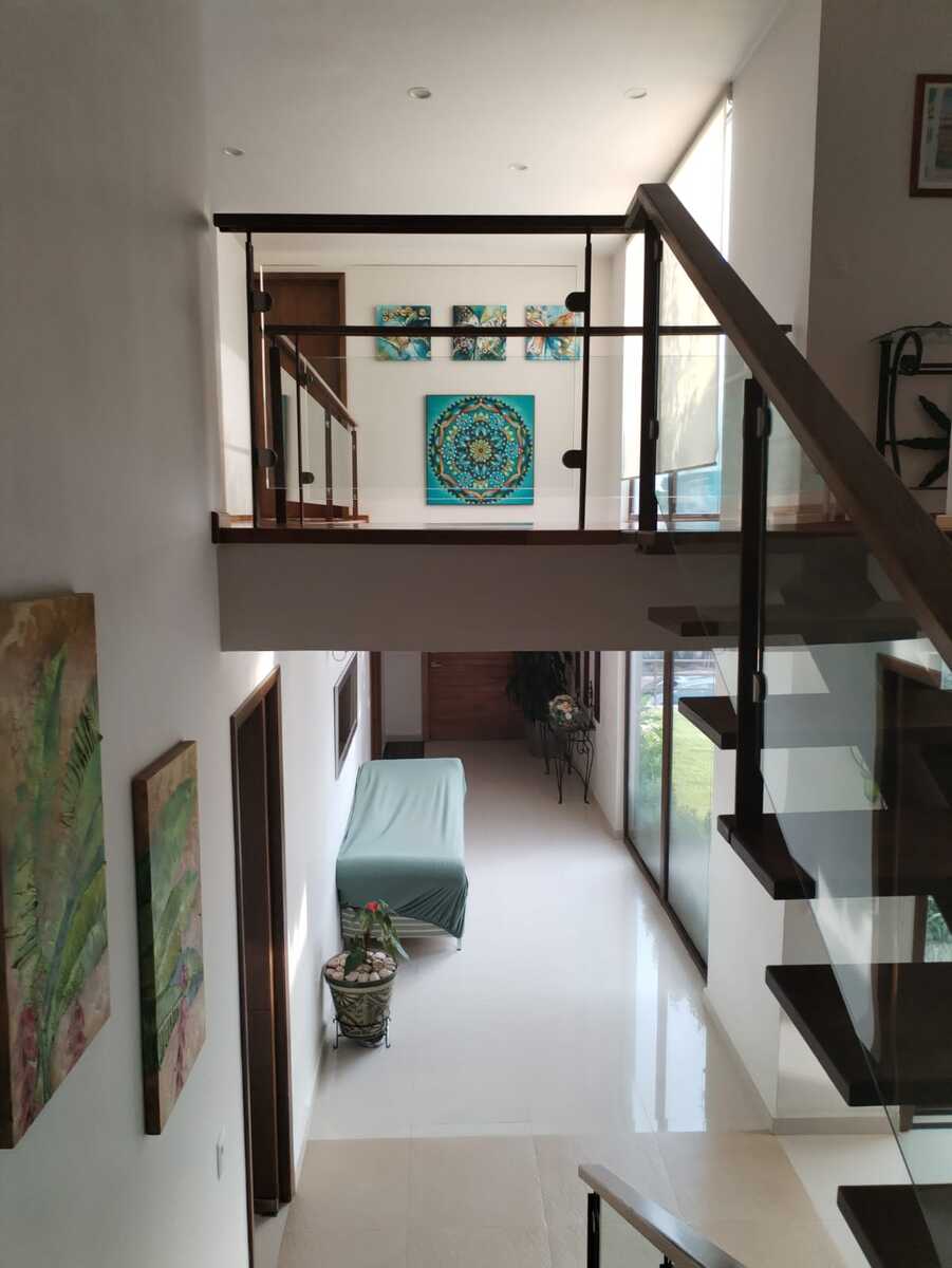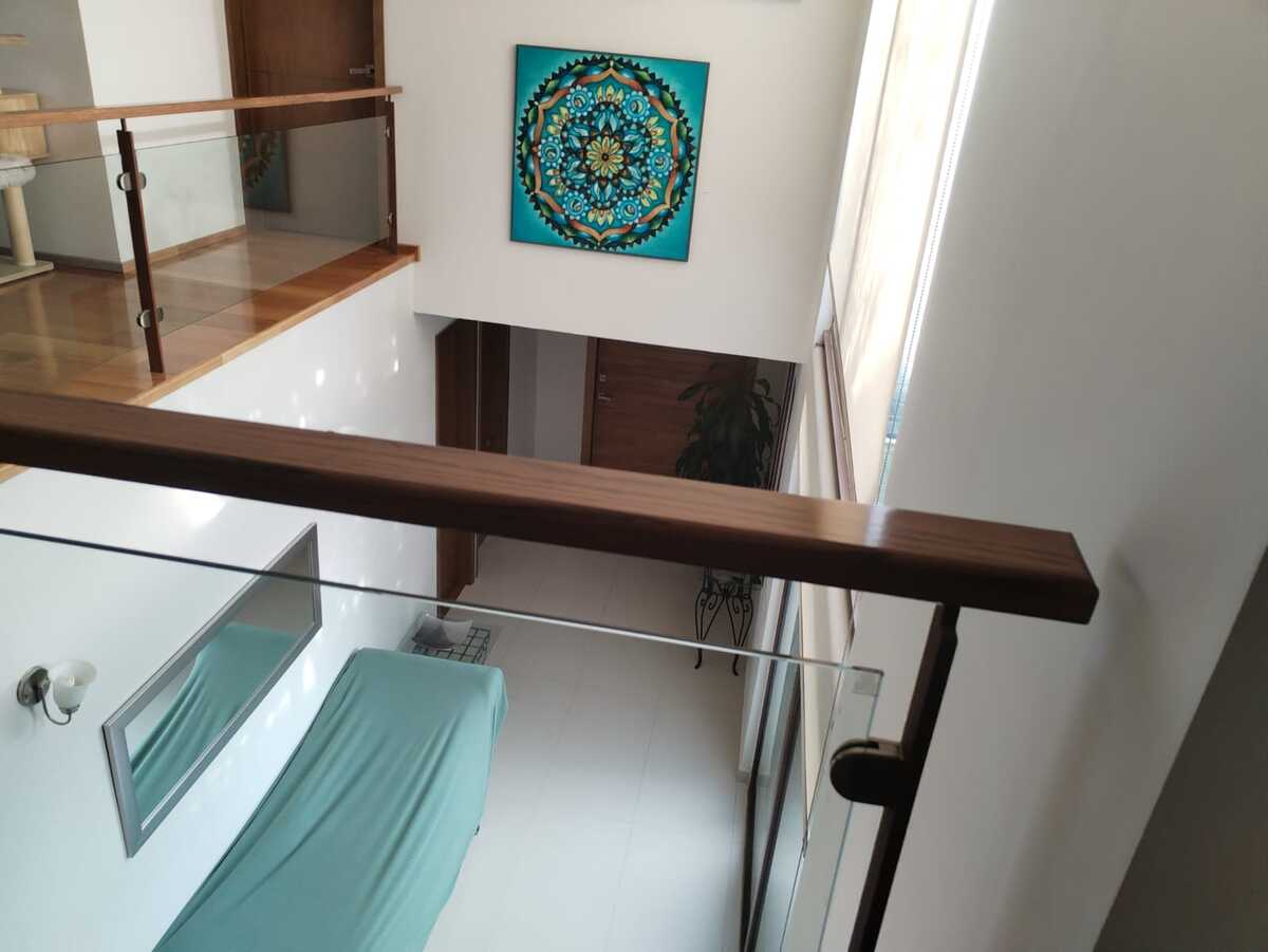 PLANTA ALTA. Cuenta con 3 recámaras cada una con baño, la principal con vestidor de buen tamaño y sala de T V. La casa está construida en una doble altura, lo cual da una sensación muy agradable.