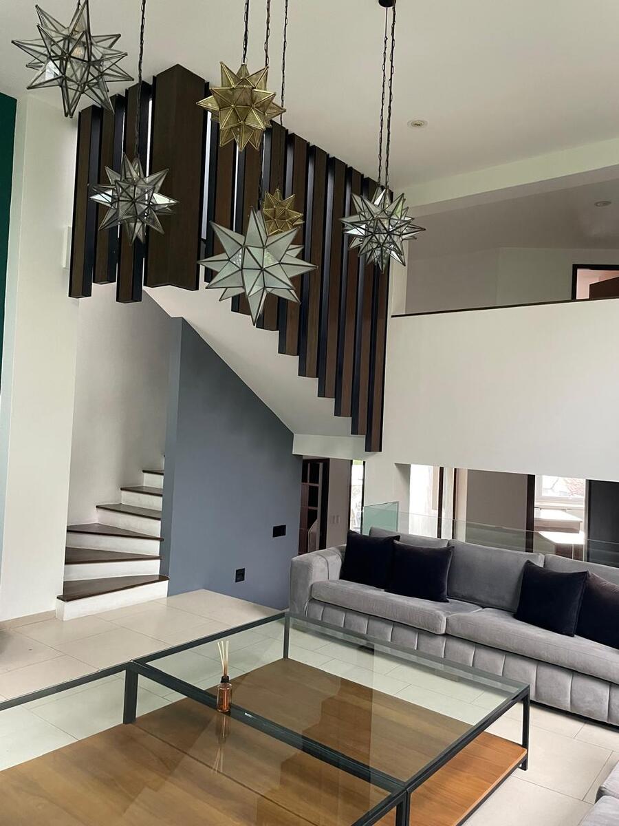 Cuenta con Estancia, Antecomedor, Cocina amplia con Isla y con acceso al Área de Servicio, 2 Áreas de Despensa, Estudio, Sala con vista al Jardín, Chimenea, Área con Pérgola y Mecedora.