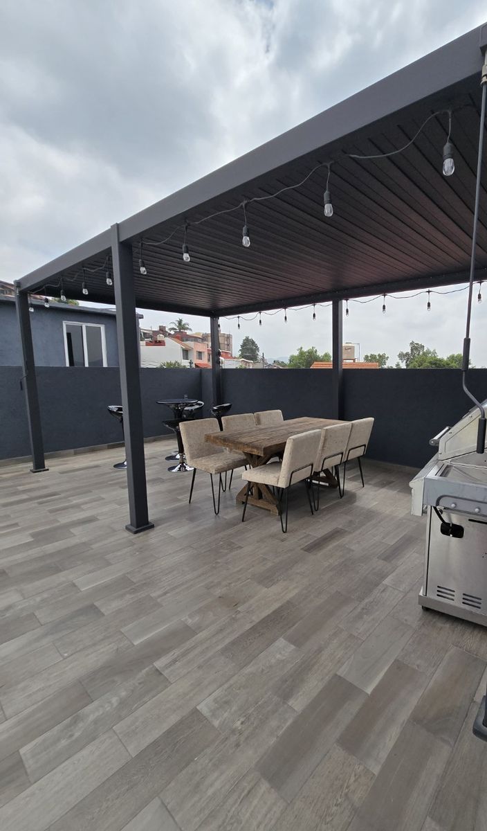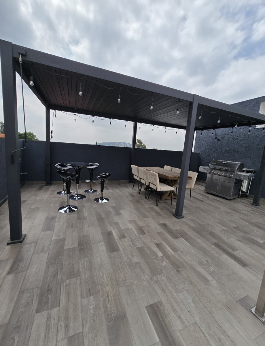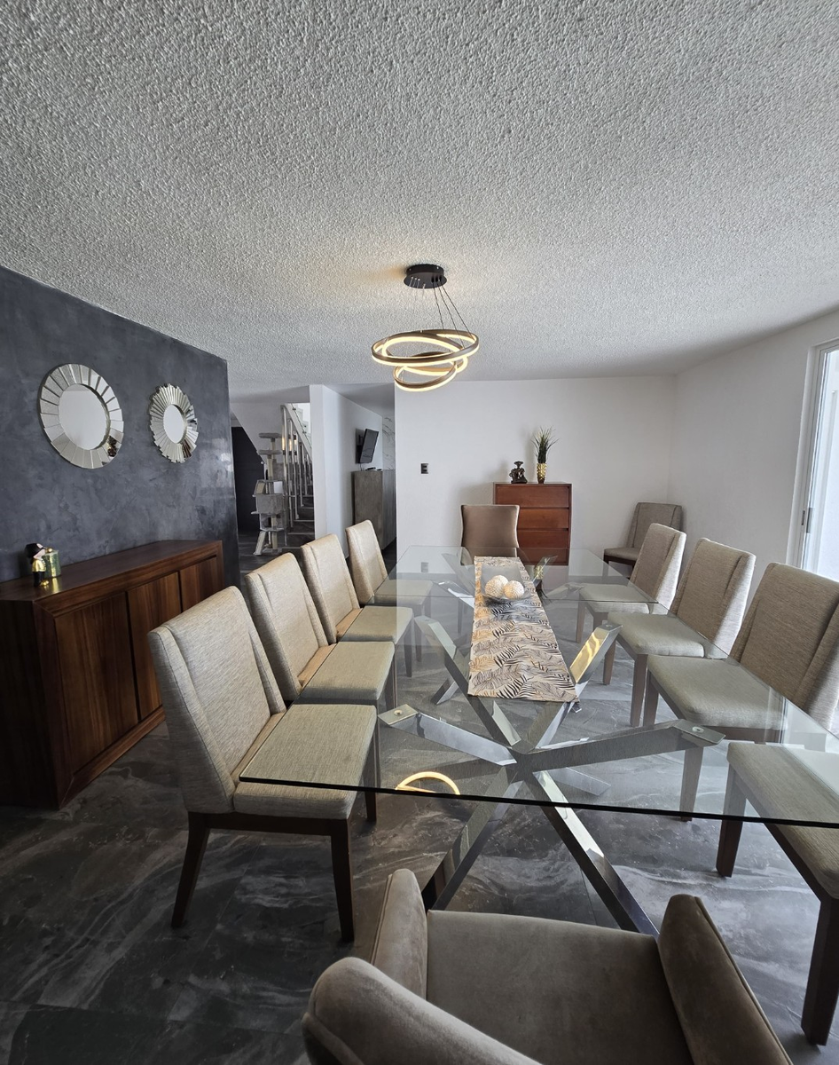 Cuenta con 3 Recamaras cada una con su baño, 2 Medios Baños, Sala de T.V, Terraza, Oficina con baños, Sala, Comedor, Cocina Integral, Area de Lavado. Tiene 3 Lugares de Estacionamiento.