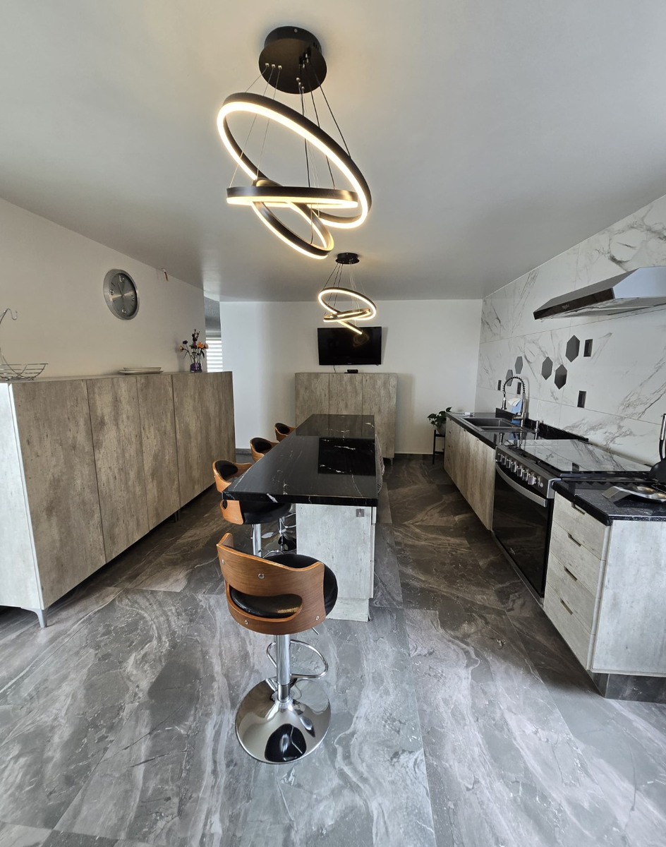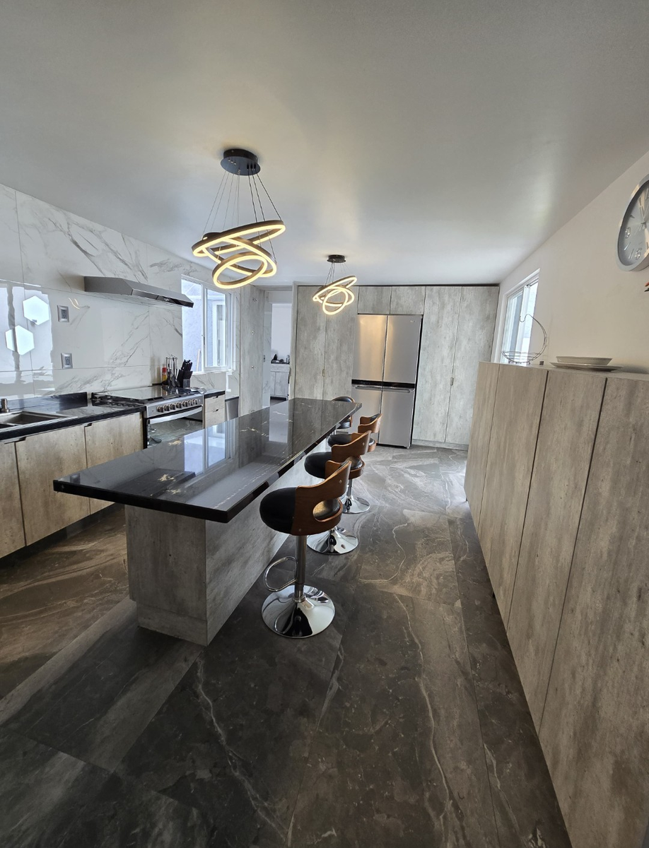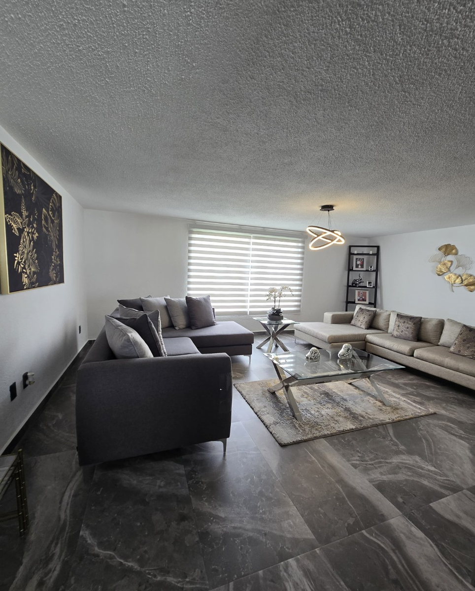 Cuenta con 3 Recamaras cada una con su baño, 2 Medios Baños, Sala de T.V, Terraza, Oficina con baños, Sala, Comedor, Cocina Integral, Area de Lavado. Tiene 3 Lugares de Estacionamiento.
