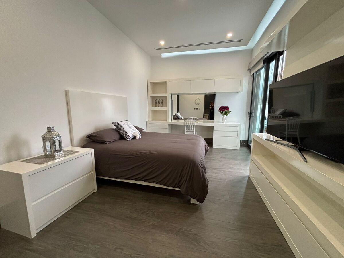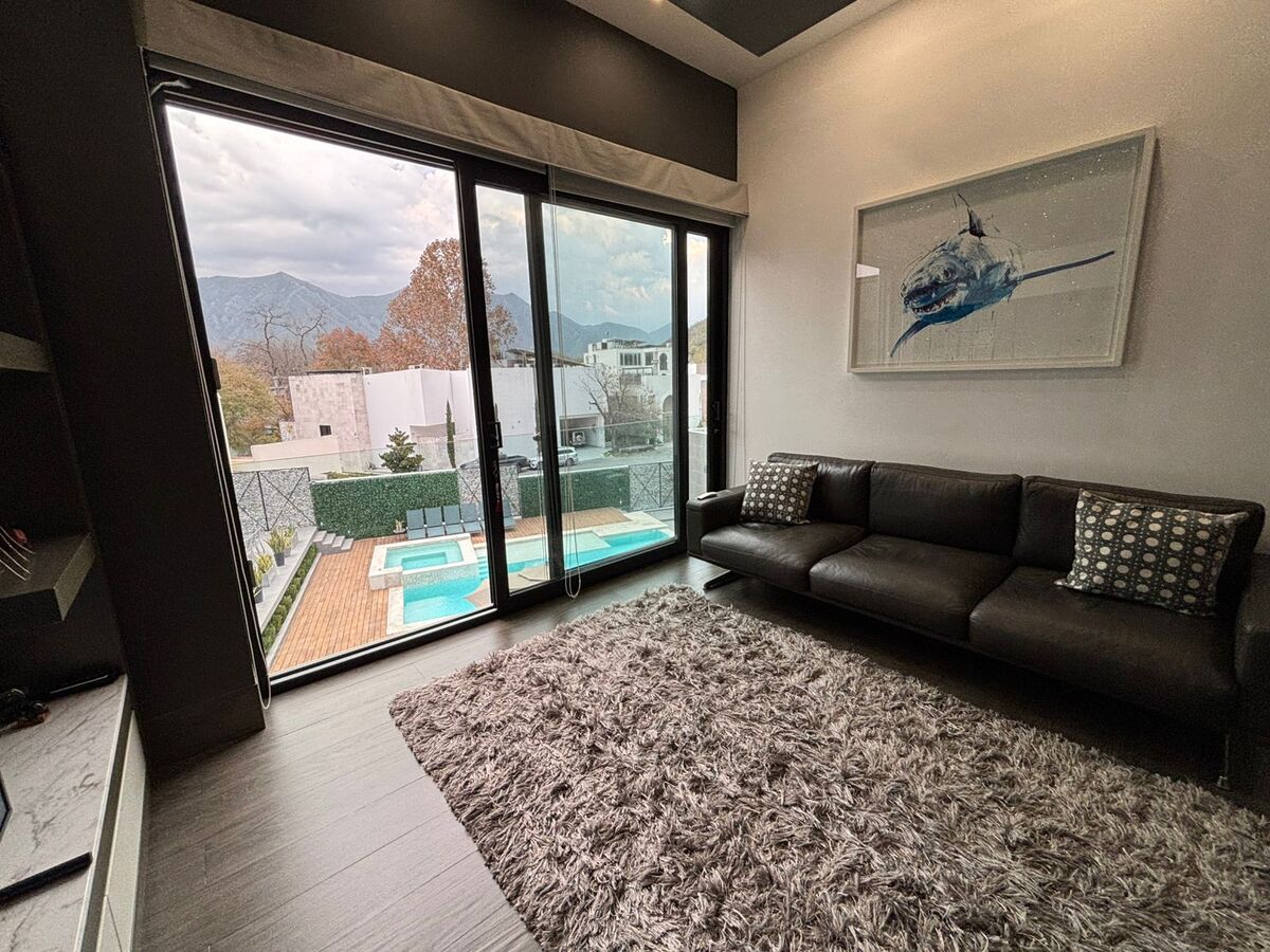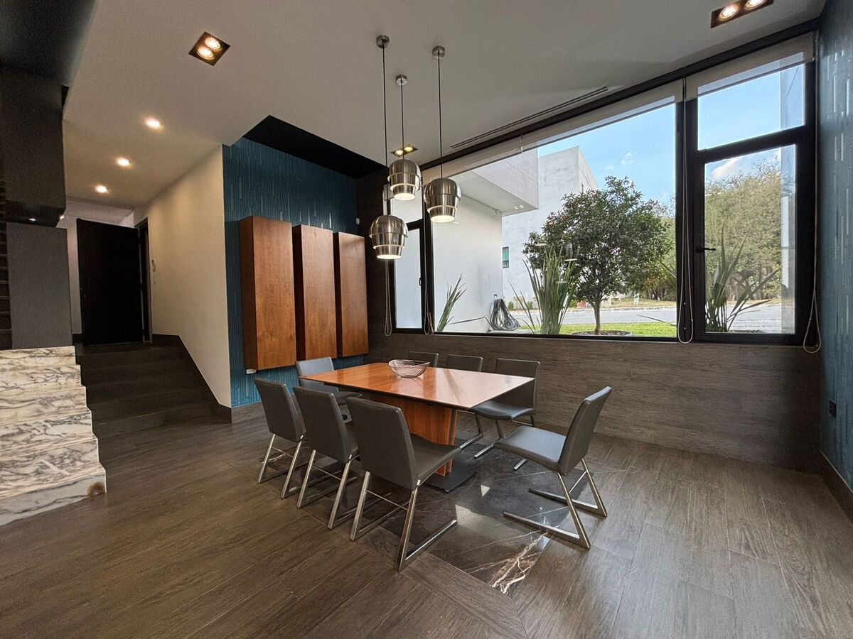 - Primer Nivel: Cochera techada para 3 autos, recibidor, baño de visitas, sala-comedor con muebles BoConcept (doble altura), cocina equipada, lavandería, cuarto de servicio, y un patio con alberca, barra con asador y baños completos.