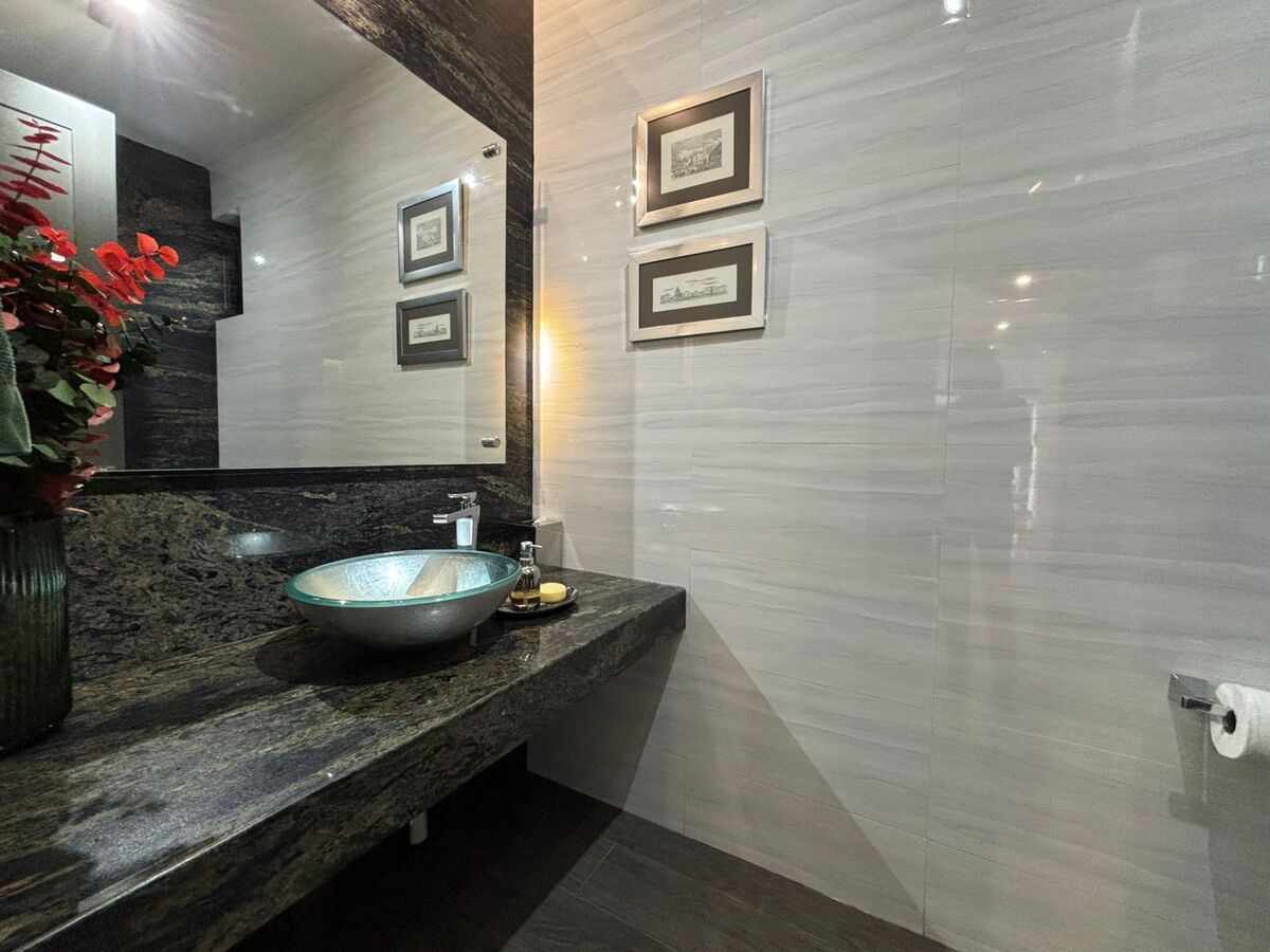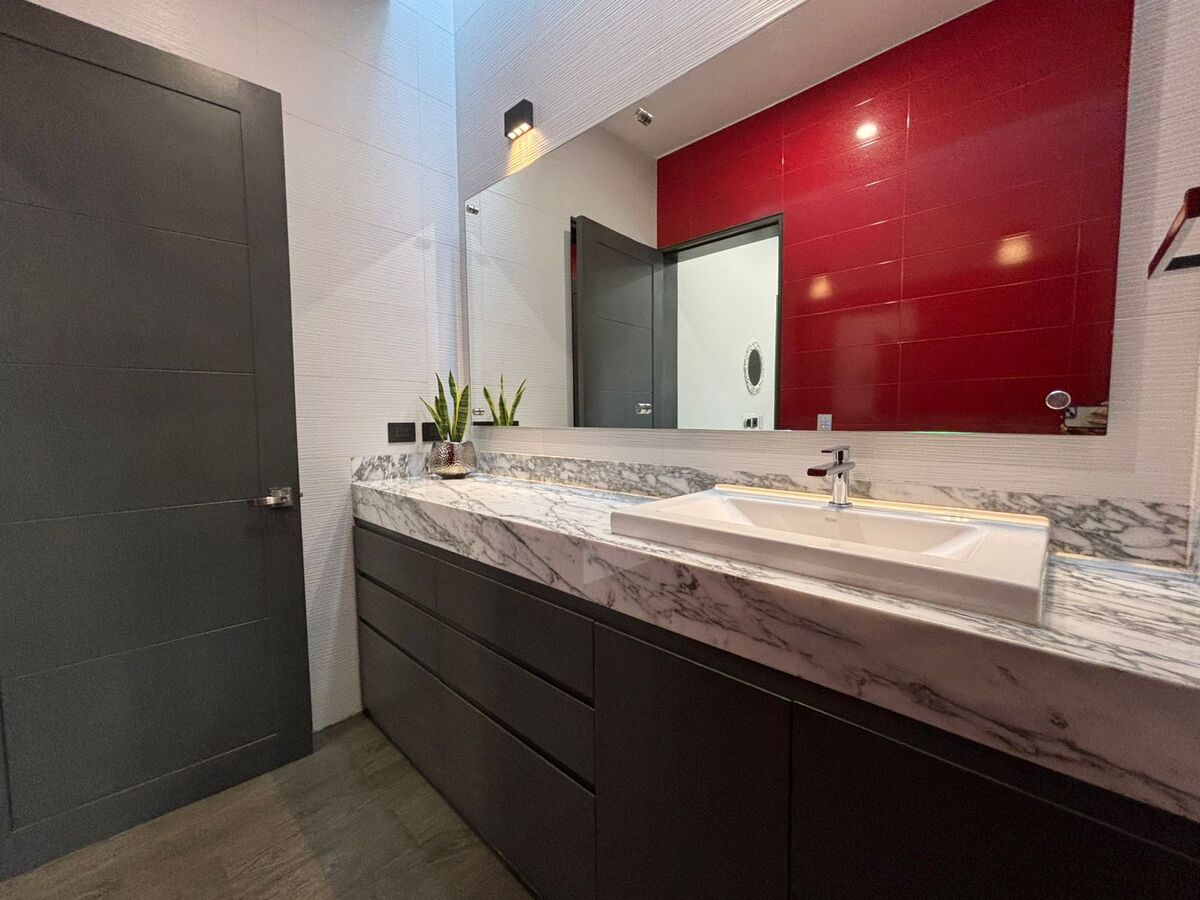 - Acabados de lujo: Mármol italiano, cuarzo y granito.