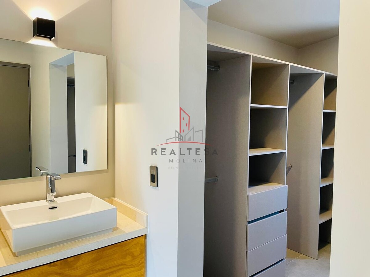 · Cocina con barra de cuarzo, madera de tzalam y armarios de alto brillo.