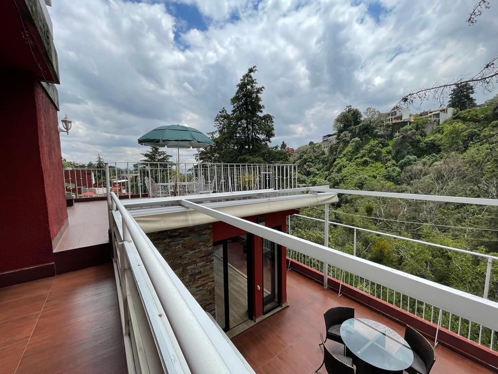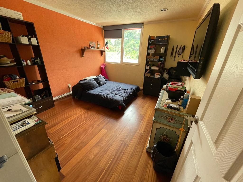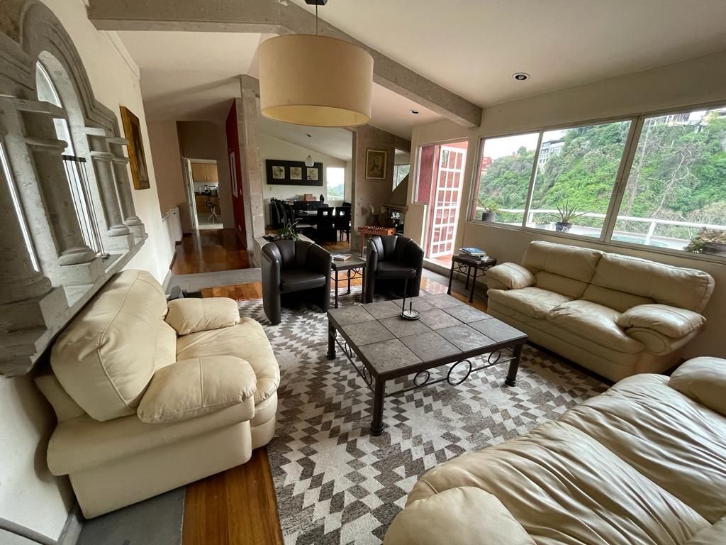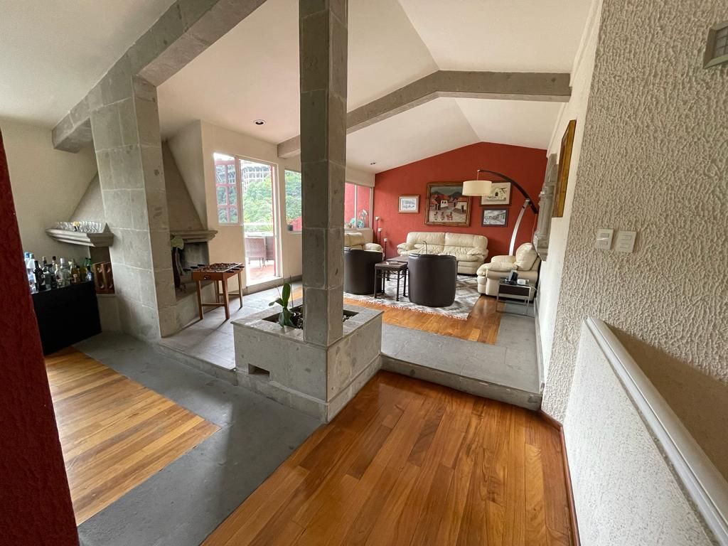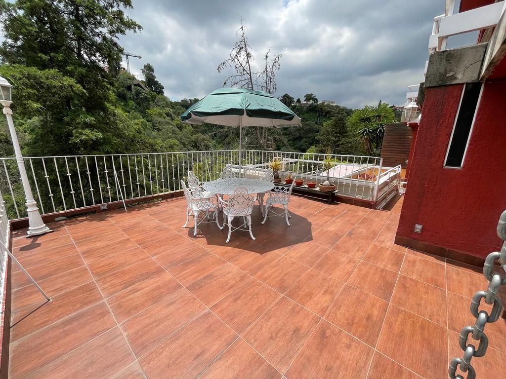 At the bottom, a large terrace with panoramic view, jacuzzi for 8 people, party room or bar with counter, half bathroom, half roof that opens or closes, storage for grill and for terrace furniture, all this connected for large events and on a floor even lower, a poker room or study or multipurpose room with bathroom.Casa en calle cerrada, amplia y buenos espacios, en planta baja tiene un recibidor, sala - comedor con pisos de madera y cantera, tiene chimenea, terraza con vista panoramica, baño de visitas, cocina con alacena y antecomedor con vista y balcon, área de lavandería con patio para tendido, cuarto de servicio con baño, estacionamiento para 6 autos.