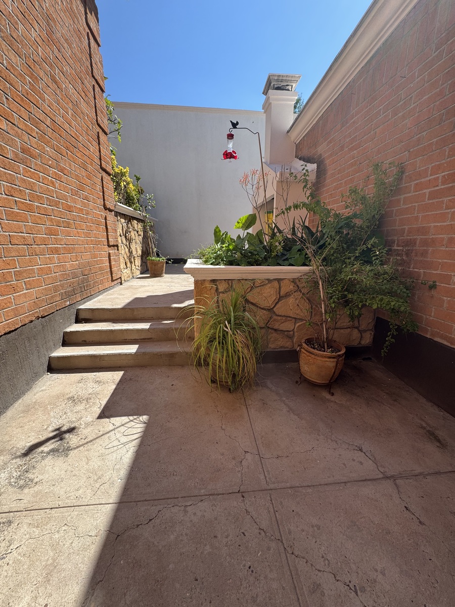 Cuenta con una salida y/o acceso a la casa por la parte de atrás a una de las calles secundarias del fraccionamiento y hay un parque.
