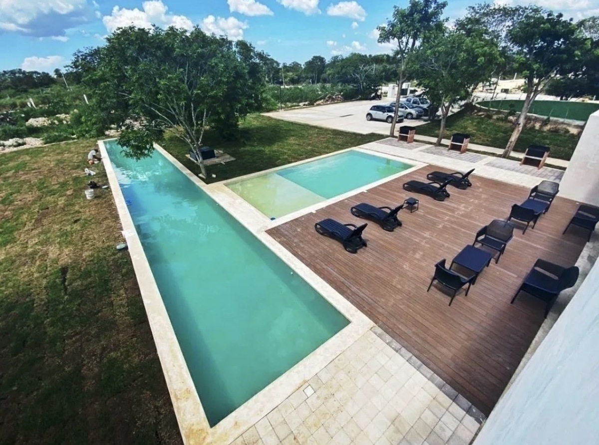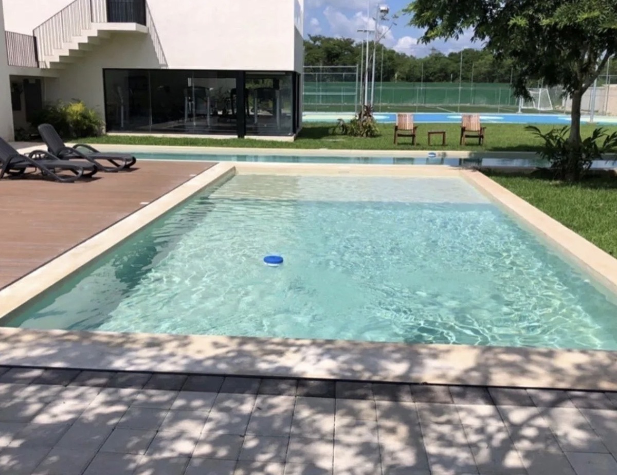 Piscina con acabado chukum, lámpara de led, pozo de llenado de 18 mts con bomba sumergible y pozo de desagüe de 12 mts.