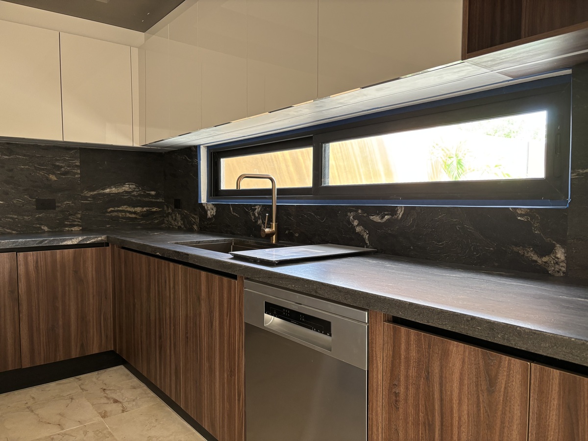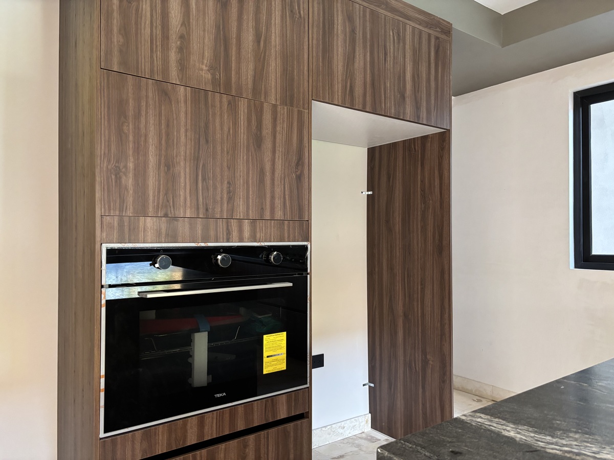 Cocina de Modul Studio equipada con parrilla, campana, hornos, lava vajillas,