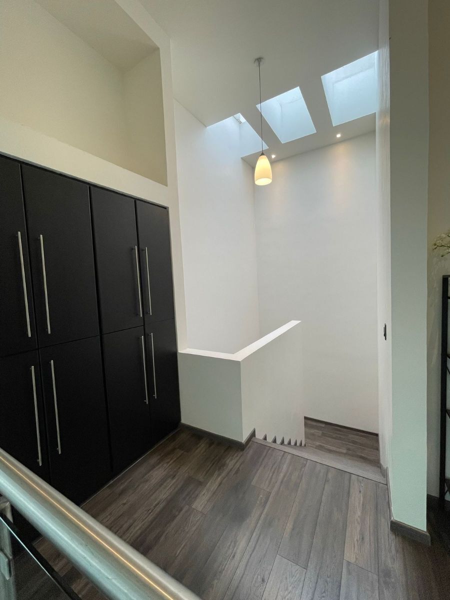 Disfruta de sus amplios e iluminados espacios, techos de doble altura, acabados de lujo, construida en dos pisos.