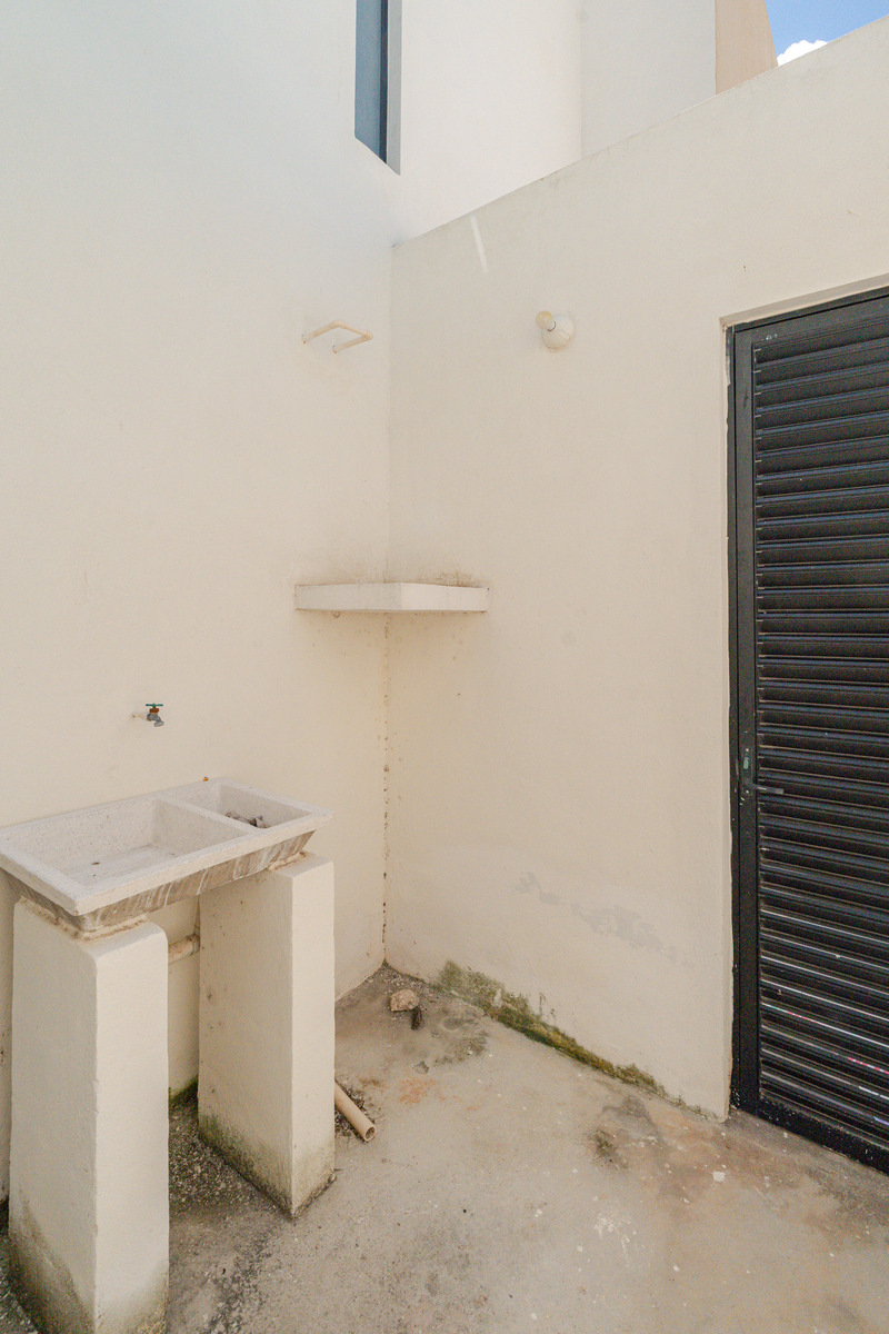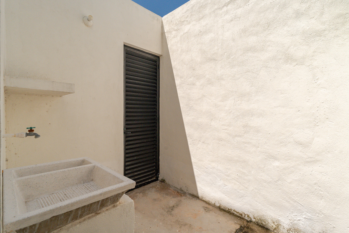 Pasillo de servicios con area de bodega y lavanderia con un pequeño patio de tendido privado.