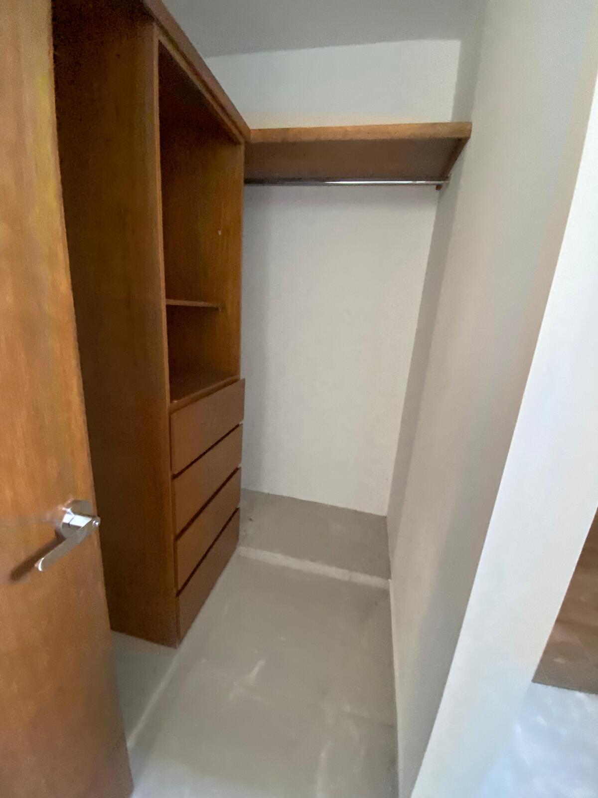 Recámara secundaria con closet vestidor y baño completo.