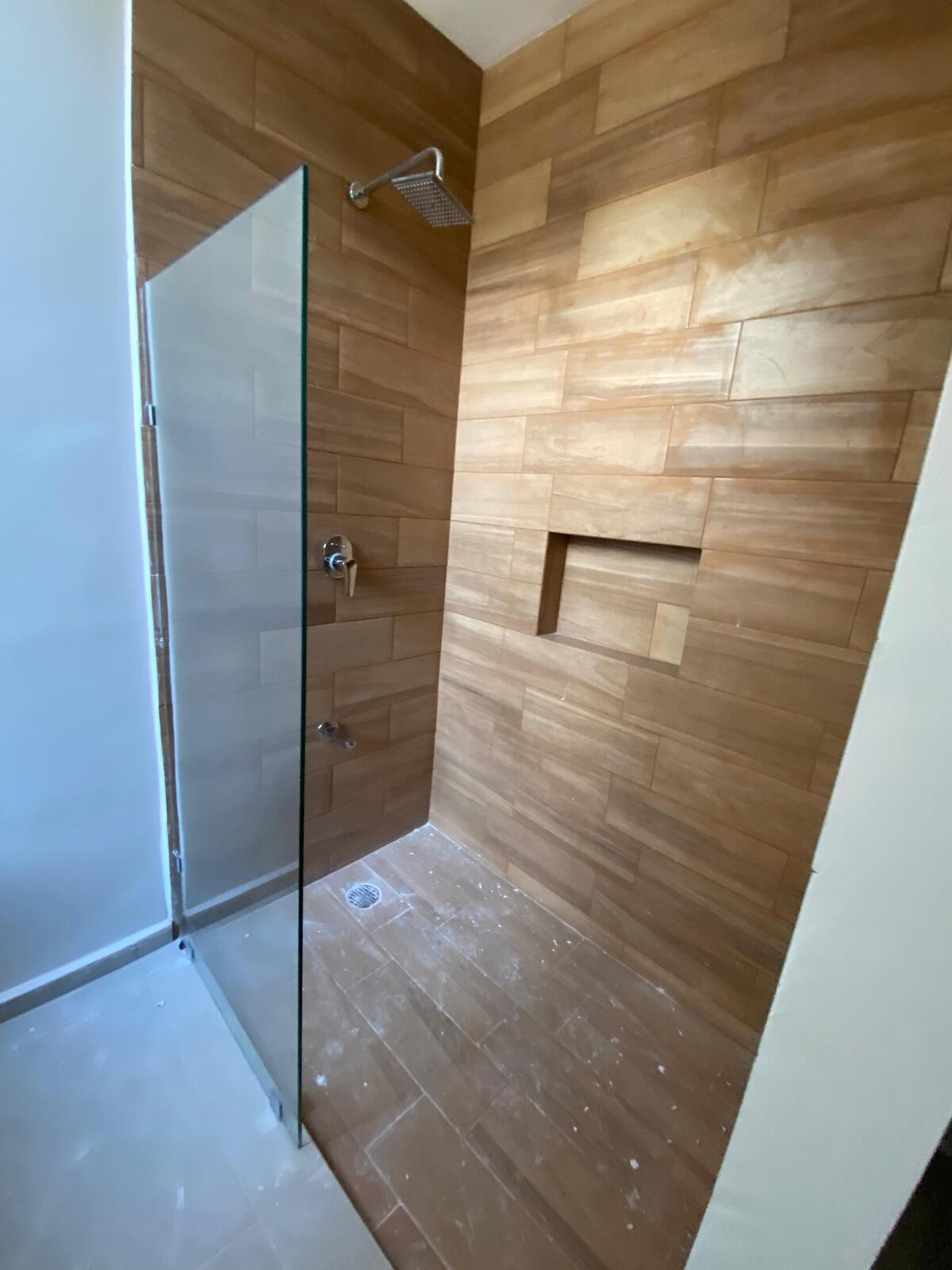 Recámara principal con closet vestidor y baño completo.