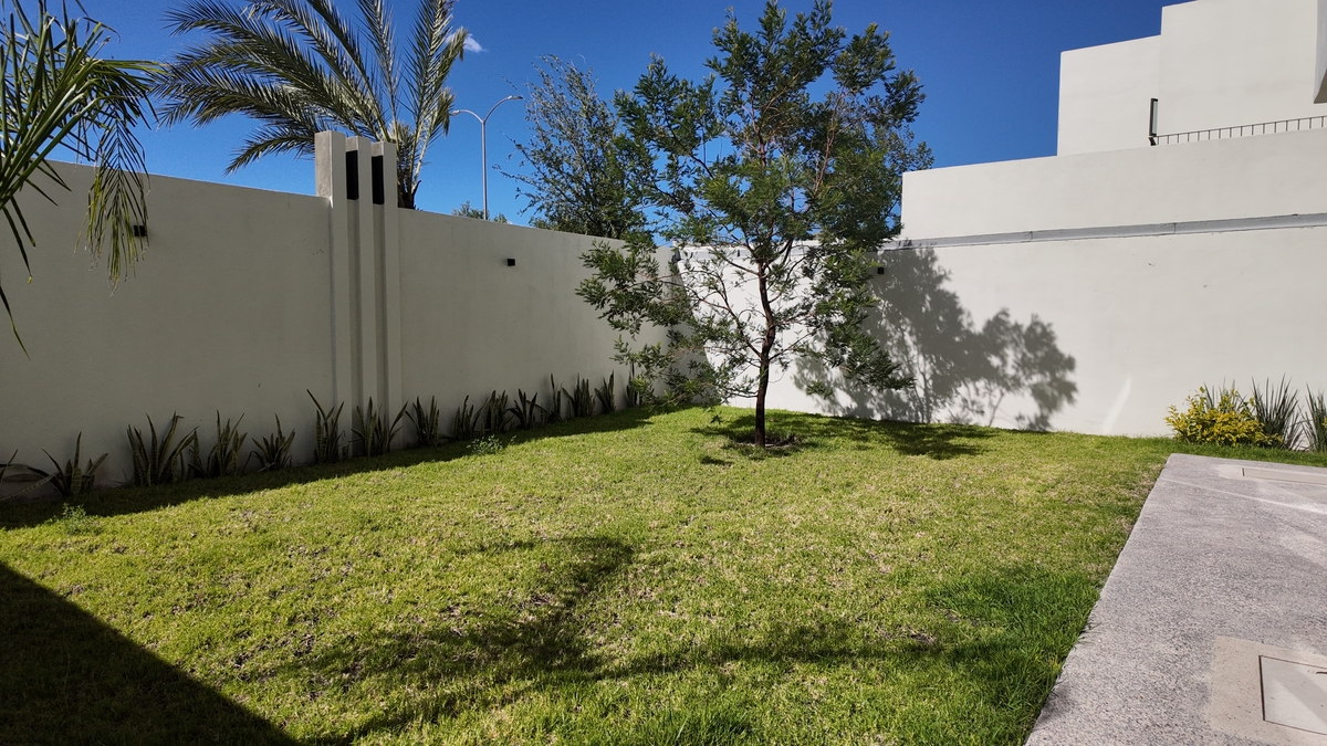 Planta baja: Sala, Comedor, Cocina equipada, Medio baño, Cuarto de servicio con baño completo, Jardín, Estudio, Espacio para 3 autos