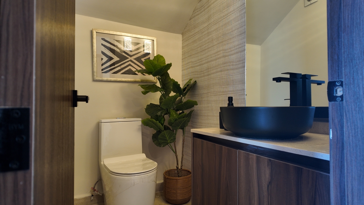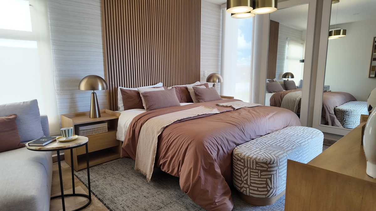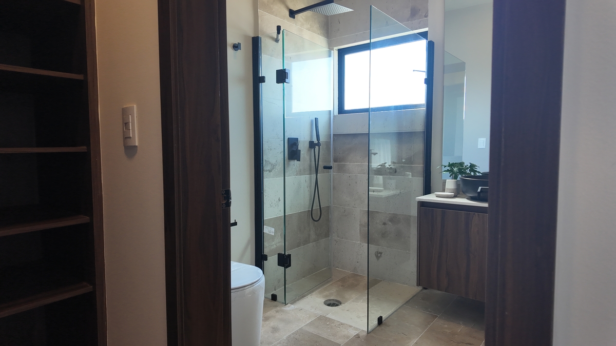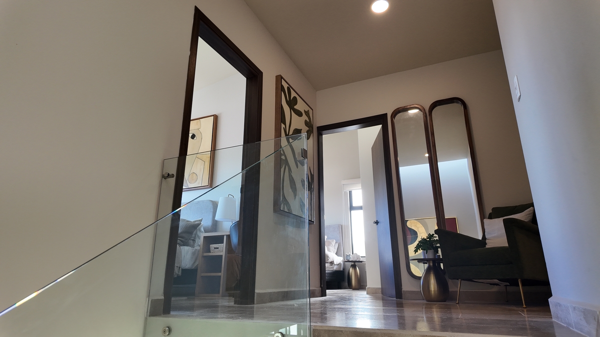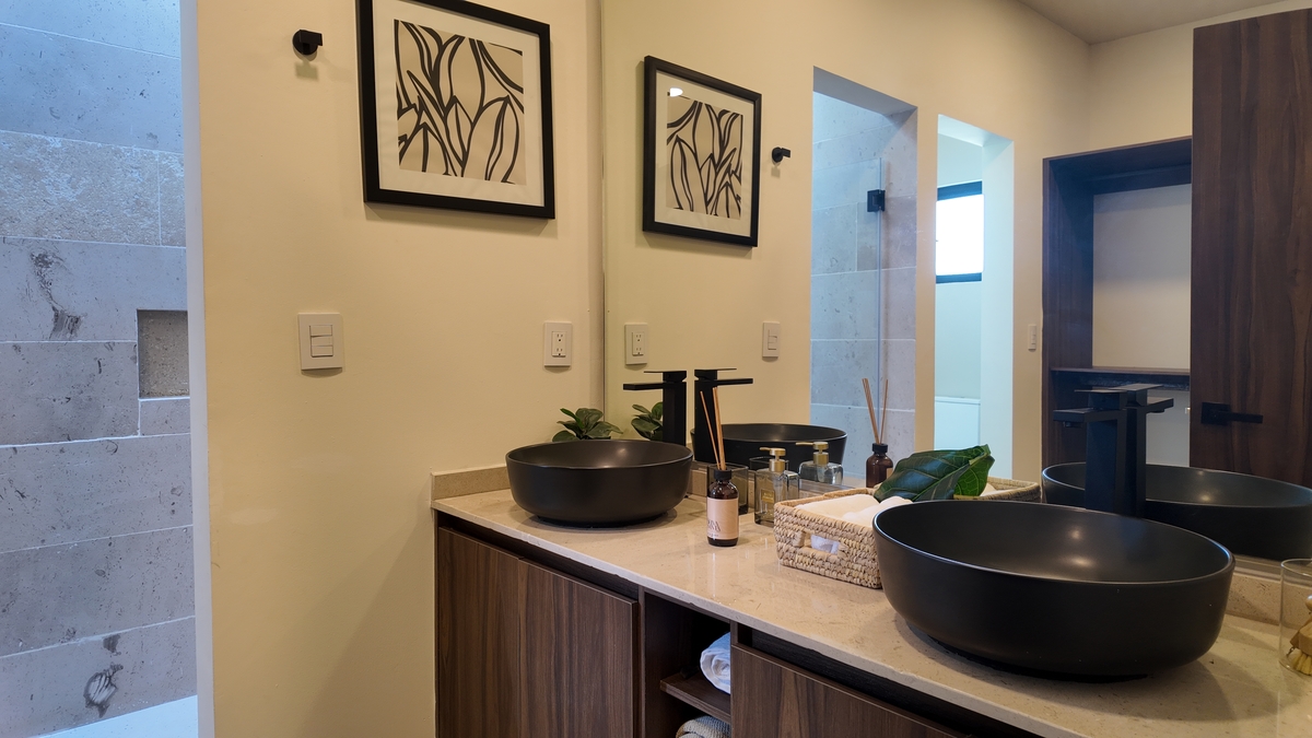 Planta alta: Habitación principal con vestidor y baño, habitación 2 con vestidor y baño, habitación 3 con clóset y baño