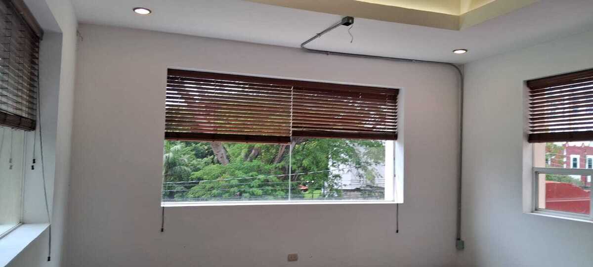 -cortinas de persianas de madera en todas las áreas.