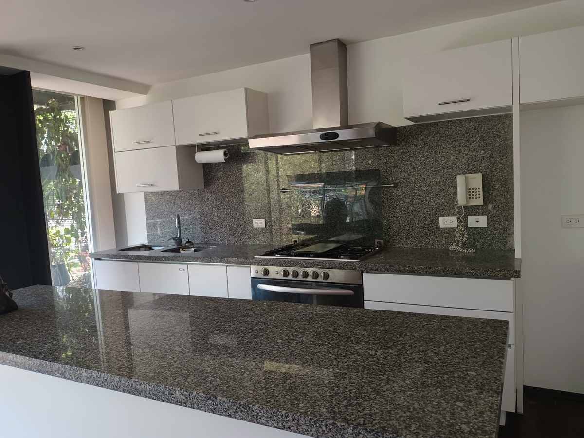 Estupendo loft de 95 m2 más una terraza de 18 m2. Amplia estancia, cocina abierta con istalación para avadora y secadora, dos recámaras, una con baño integrado y otra con otro baño, un estacioamiento fijo. Elevador, persianas, magníficos acabados en mármol. Lleno de luz, Vigilancia 24 horas.