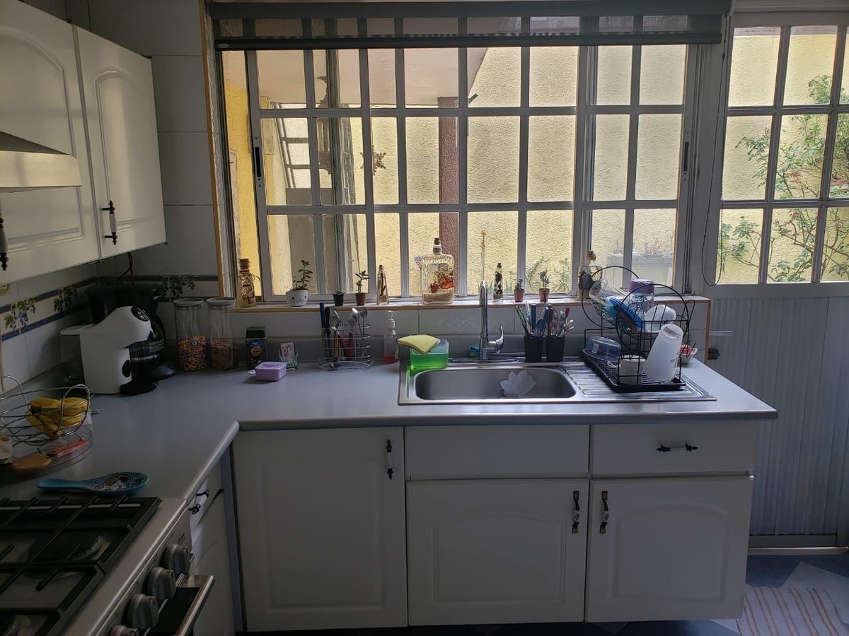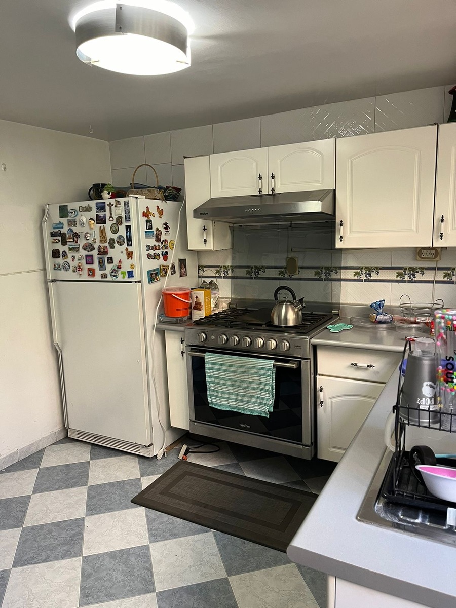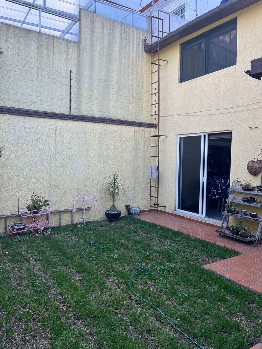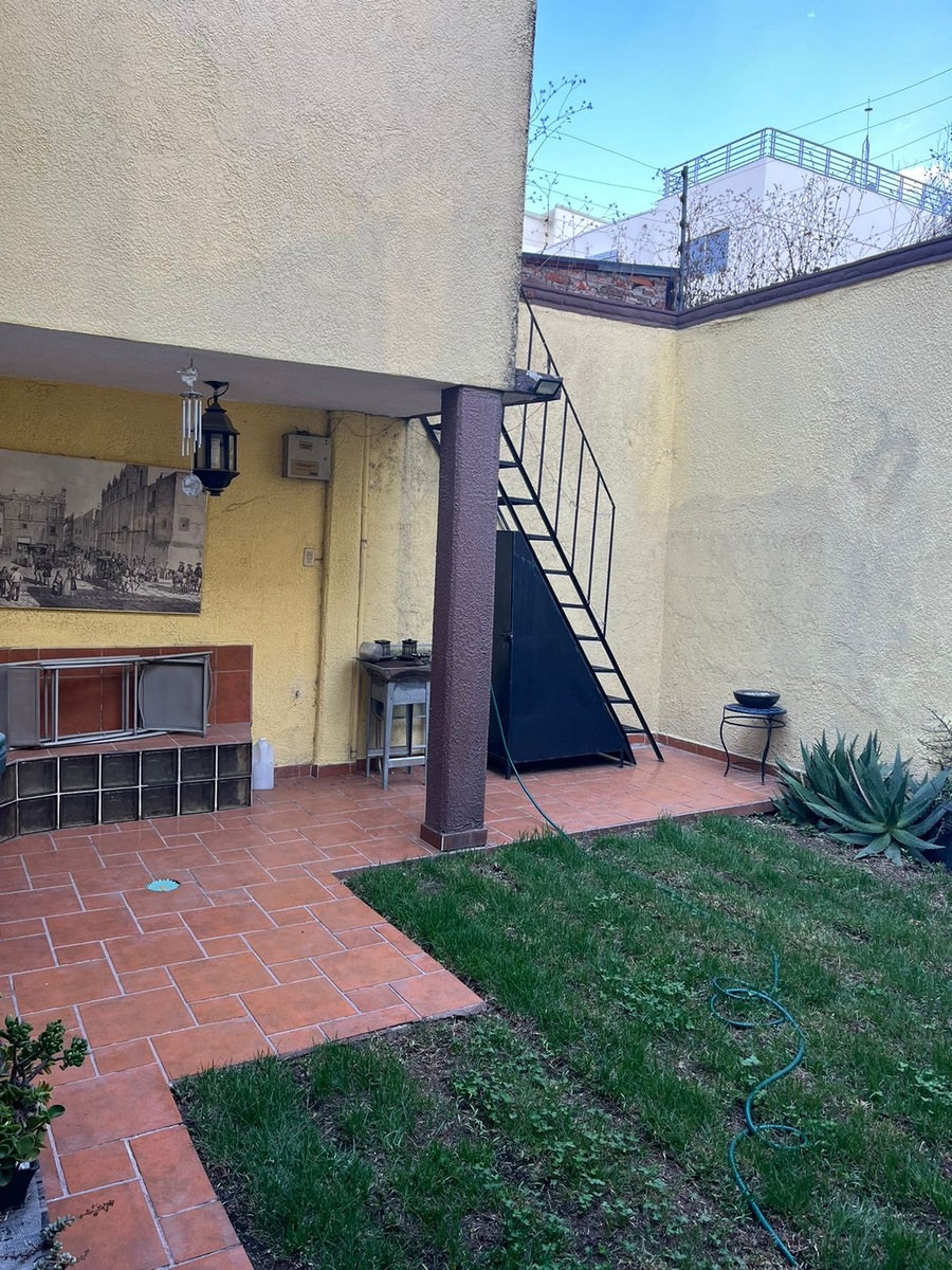 3 recamaras la principal muy amplia con baño completo, las otras 2 comparten baño completo, área de TV, estancia sala comedor con acceso a jardín trasero 35mts y medio baño, cocina integral, área de lavado y 2 estacionamientos con portón eléctrico.