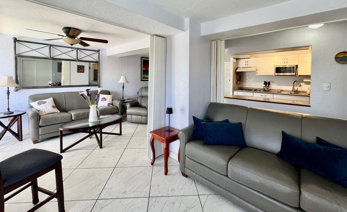 The condominium features a division between the guest bedroom and the living room, for open spaces and additional views.