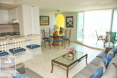 Precioso departamento en el área de Acapulco DoradoCon vista a la bahía3 rec2 bañosPiso 10ElevadorGymSeguridadAmuebladoIncluye:Agua y gas.