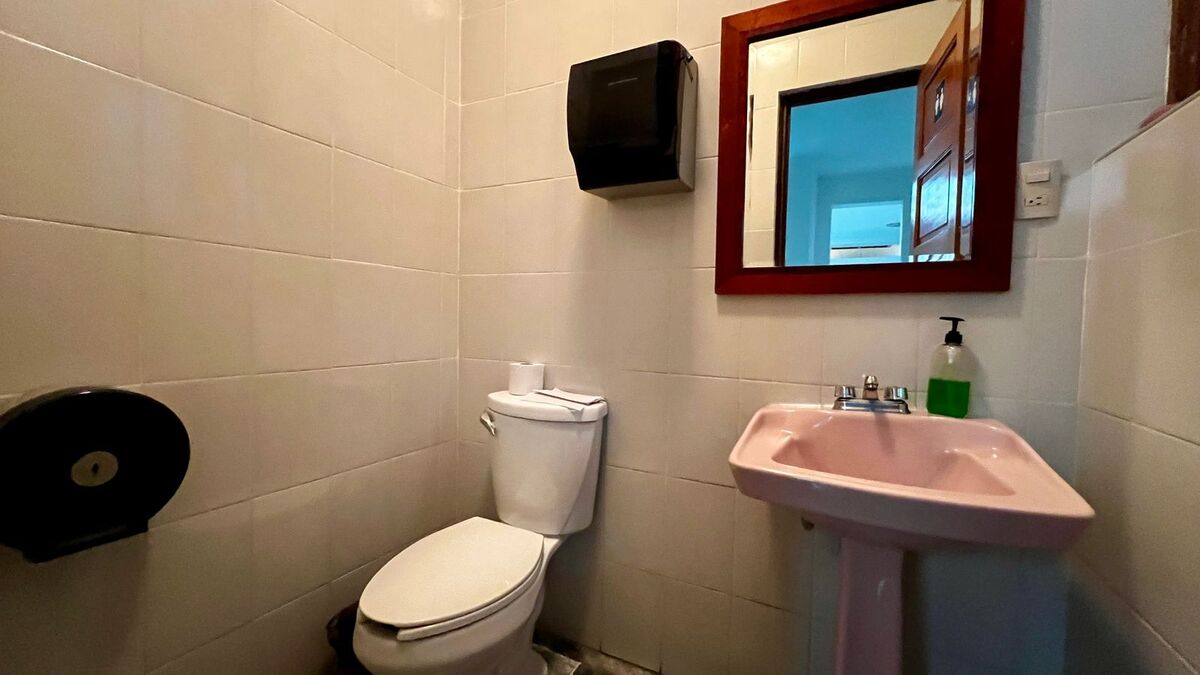 Acceso principal con recepción, sala de espera y dos medios baños.