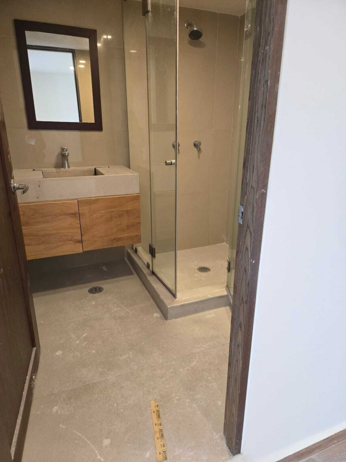 Terminados con mármol en baños, cocina de granito, y pisos de ceramica imitación madera y porcelanato, y closets.