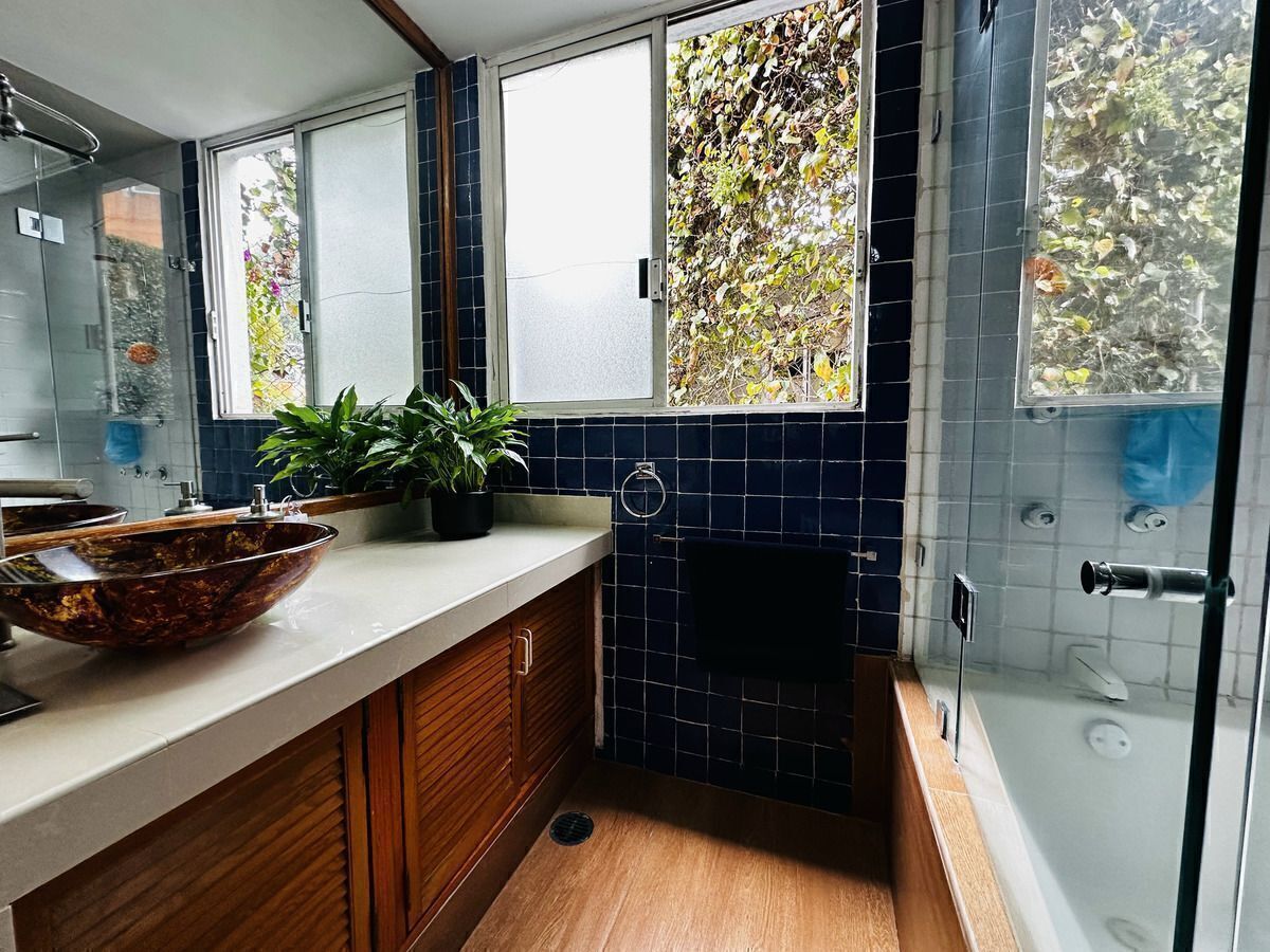 Located just 5 minutes from Santa Fé and 15 minutes from Interlomas, this house in a condominium features three bedrooms and two full bathrooms, a social area that includes a living-dining room with a view of the garden and a TV area. Modern kitchen, laundry room, and service room. Very bright and with 24-hour security. 2 parking spaces. Party room, jacuzzi, fronton, barbecue area, garden with children's play equipment.Ubicado a tan solo 5 minutos de Santa Fé y 15 min de Interlomas se encuentra esta casa en Condominio de tres recámaras y dos baños completos, Área social que incluye sala comedor con vista al jardín y área de TV. Cocina moderna, cuarto de lavandería y de servicio. Muy Iluminada y con seguridad 24 horas. 2 lugares de estacionamiento. Salón de fiestas, jacuzzi, frontón, área de asadores, jardín con juegos para niños